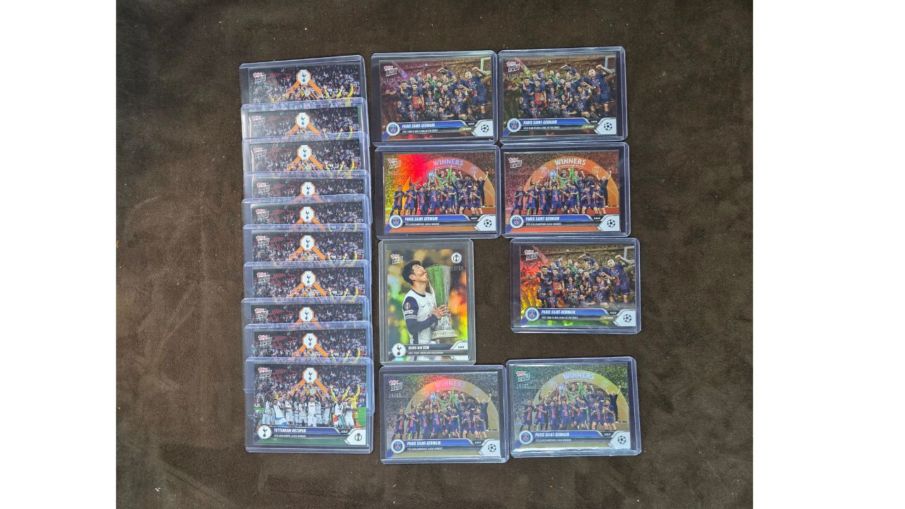 PSG Championship Commemorative Topps Now cards: 7 cards limited to 25 or 50 copies, by lottery.