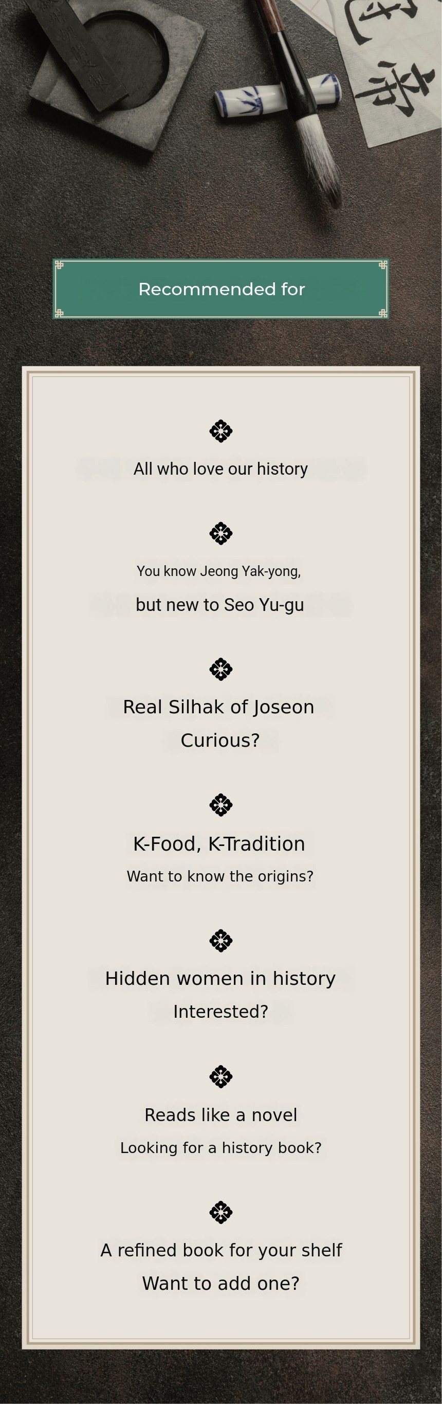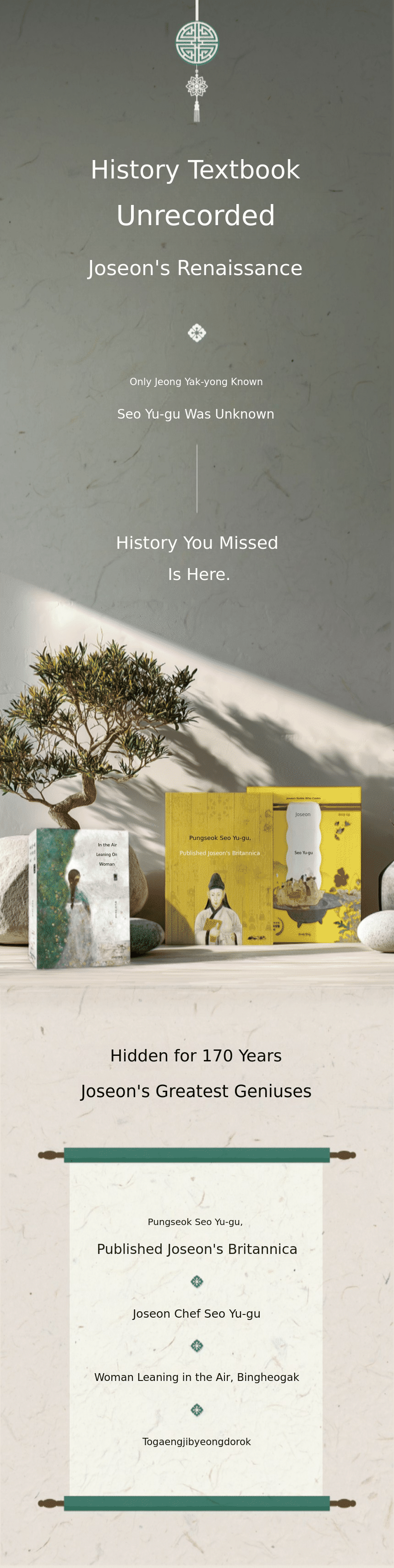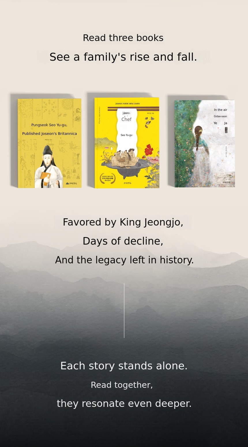 If you know nothing about Seo Yu-gu, we recommend starting with "Pungseok Seo Yu-gu, Publishing the Britannica of Joseon." If you want to read it like a novel, you can start with "Joseon Chef Seo Yu-gu" and "The Woman Standing in the Air, Bingheogak."