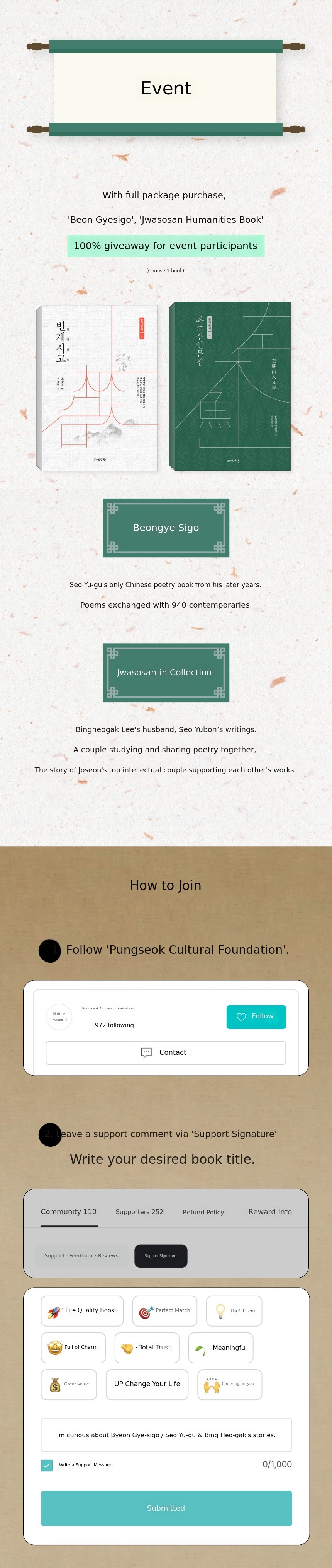 Your participation is a great help in making Seo Yu-gu's achievements known to more people.