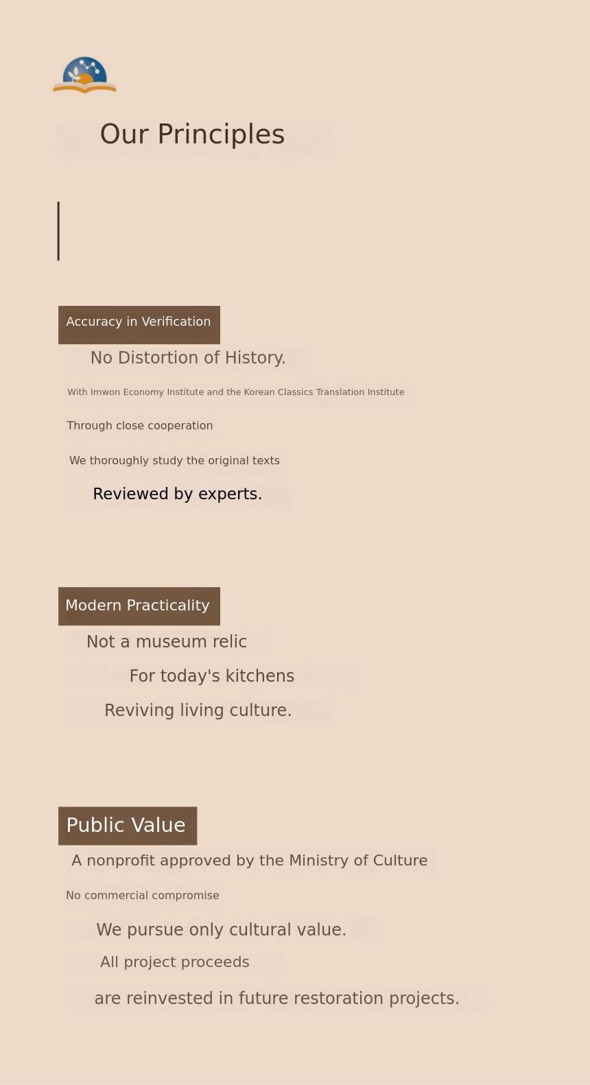 From deciphering Joseon Dynasty ancient texts to restoring traditional foods and recording vanishing everyday culture, we create cultural heritage to pass on to the next generation, balancing historical authenticity and modern reinterpretation.
