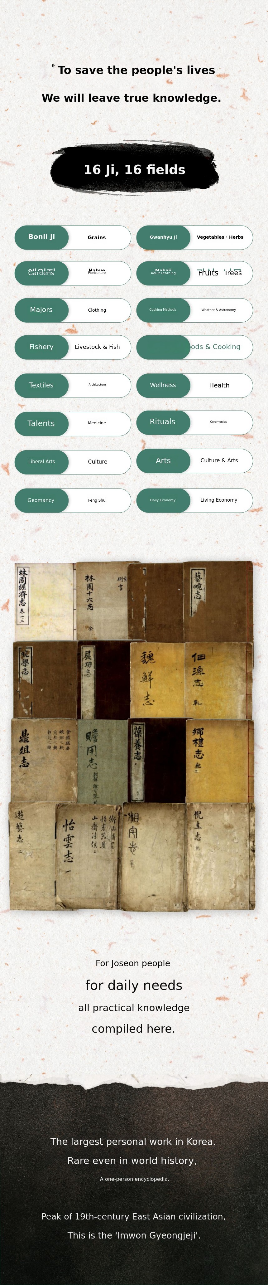 We support the ongoing Imwon Gyeongjeji publication project even after the complete translation of Wiseonji is published in February 2024. The funds will be used for accurately deciphering the original Chinese text from 200 years ago and for expert verification in collaboration with the Imwon Economy Research Institute and the Institute for the Translation of Korean Classics.