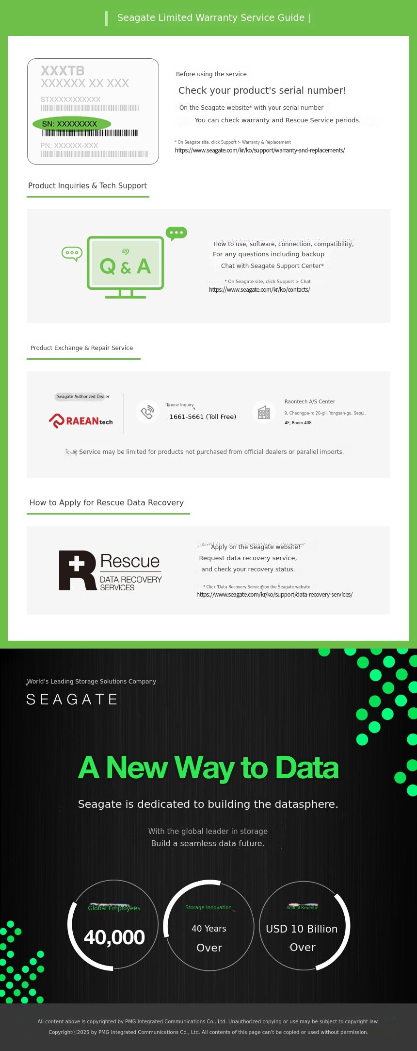 This product is an official genuine item shipped directly from Seagate's authorized distributor, 'Raeantec', so you can purchase with confidence.