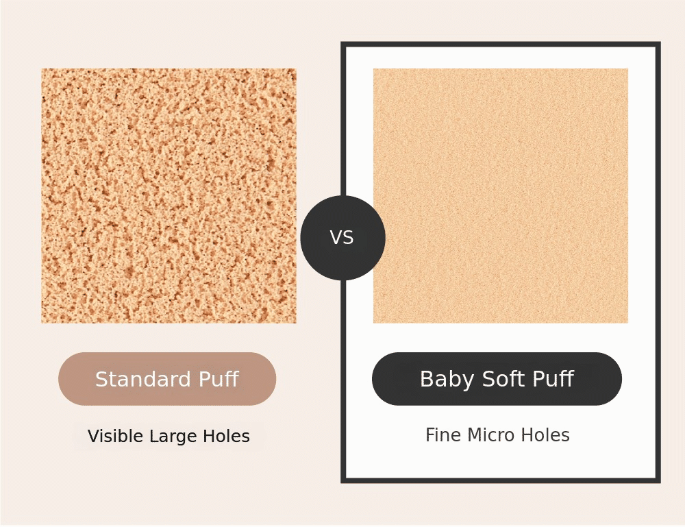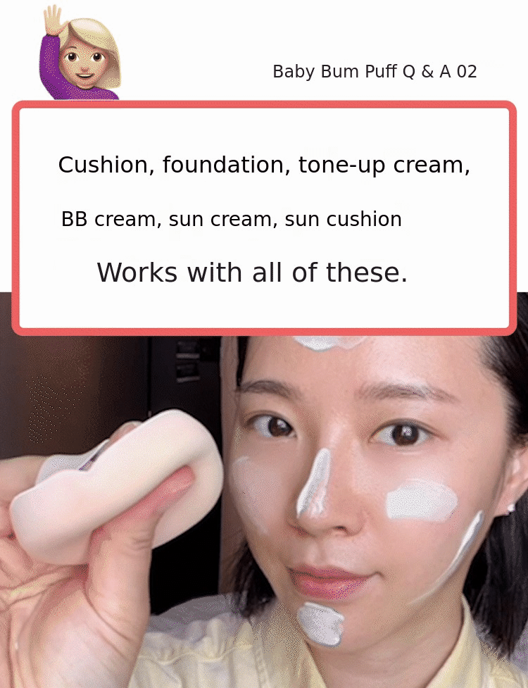 regular foundation, cushion, pact, and more can all be used.The Baby Bottom Puff serves as a "tool" that allows any formula to adhere closely to your skin.