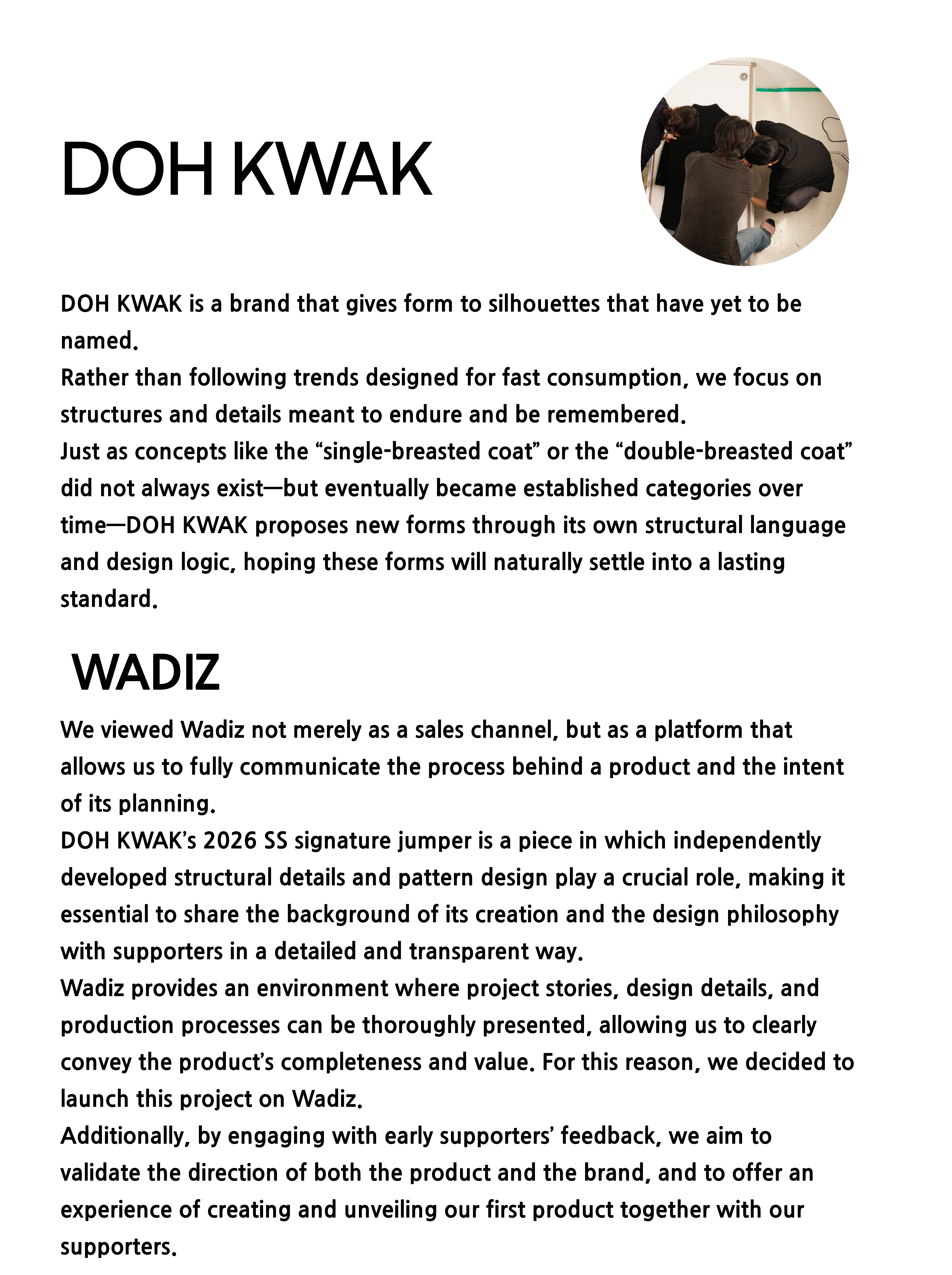 DOH KWAK directly handles the entire process from design, pattern, to sample sewing,