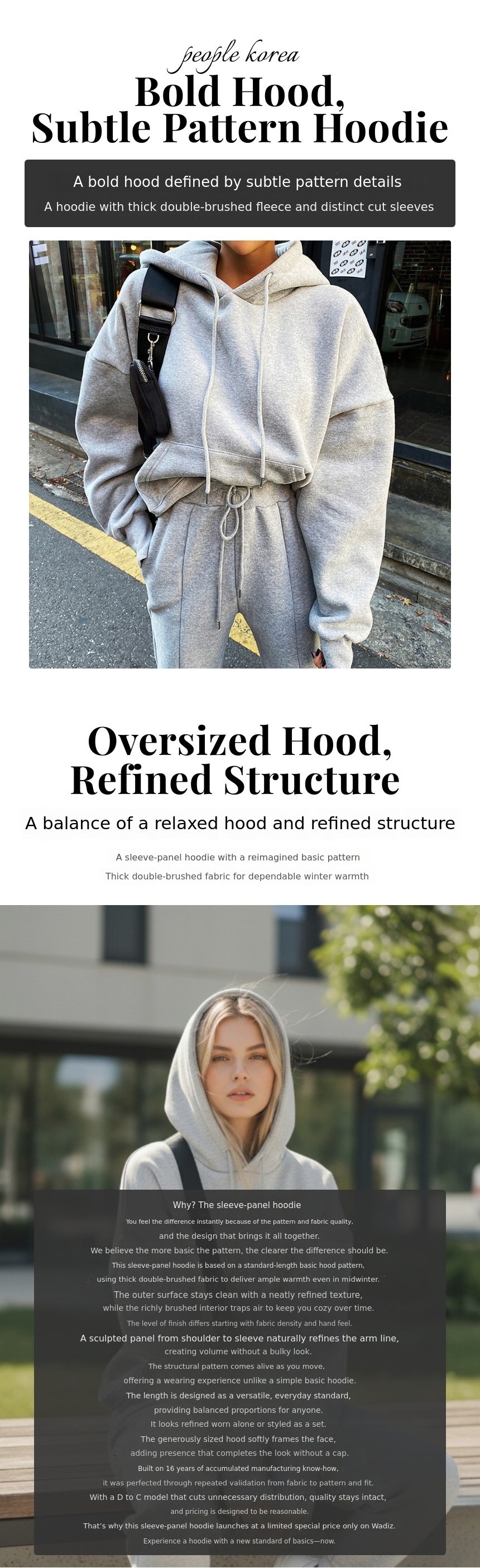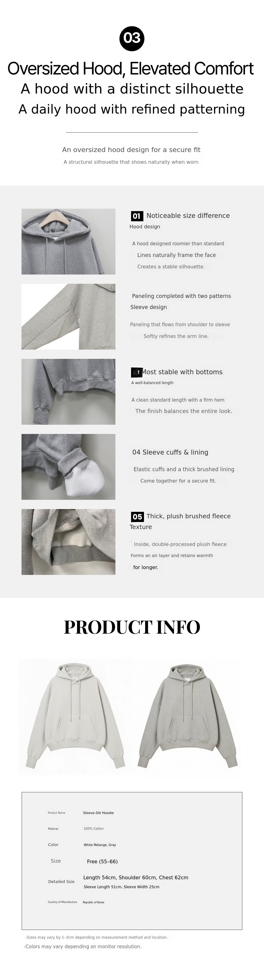 1. 🧥 Thick Brushed Sleeve-Cut Hoodie - Warm brushed fabric with unique sleeve-cut design 2. ✨ Refined Silhouette Design - Reinterpreted basic hood pattern for stable, voluminous fit 3. 🎁 Exclusive Special Price - Reasonable price with 16 years of manufacturing expertise