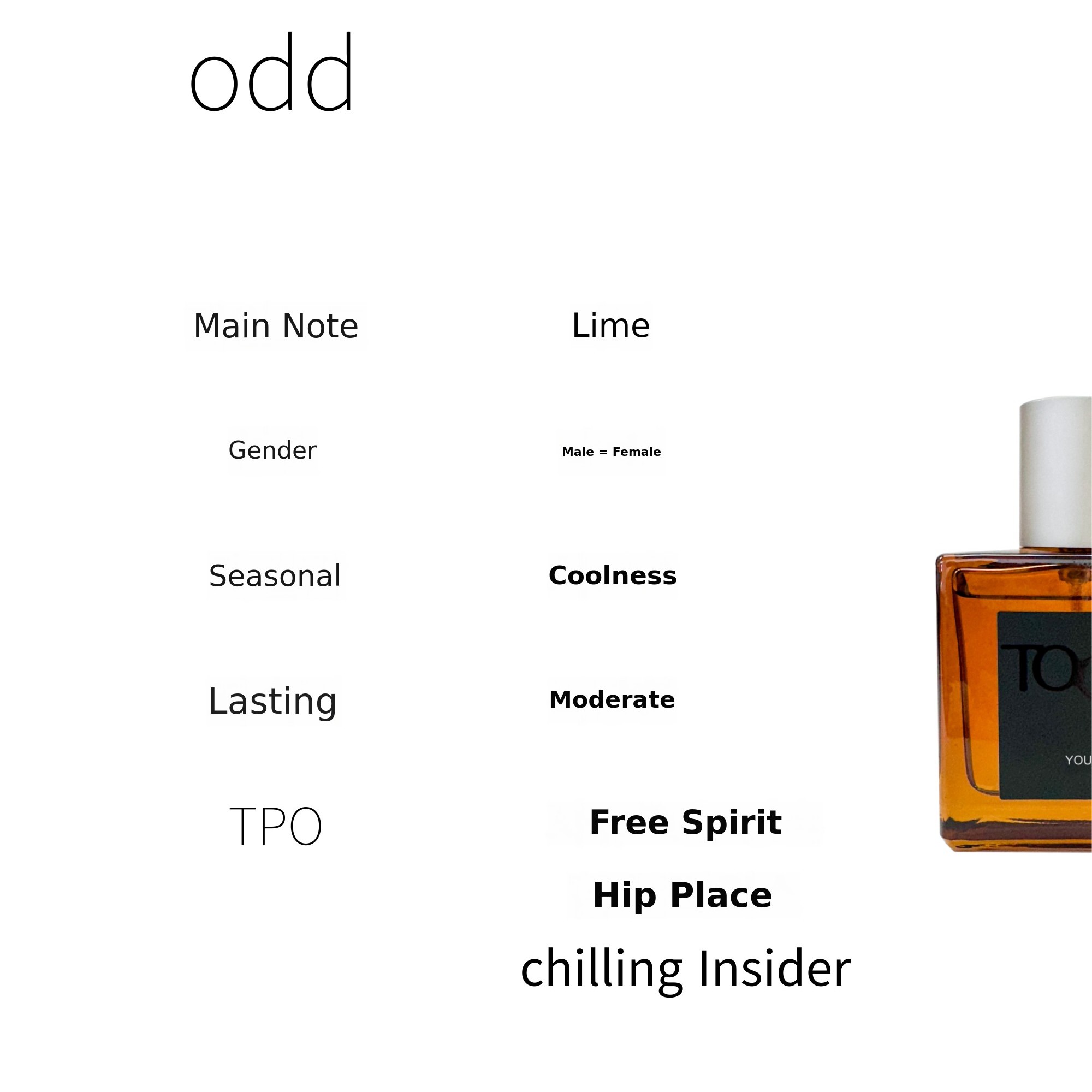 TOOD is a perfume brand that affirms 'Too Odd,' meaning 'a slightly different me.'
