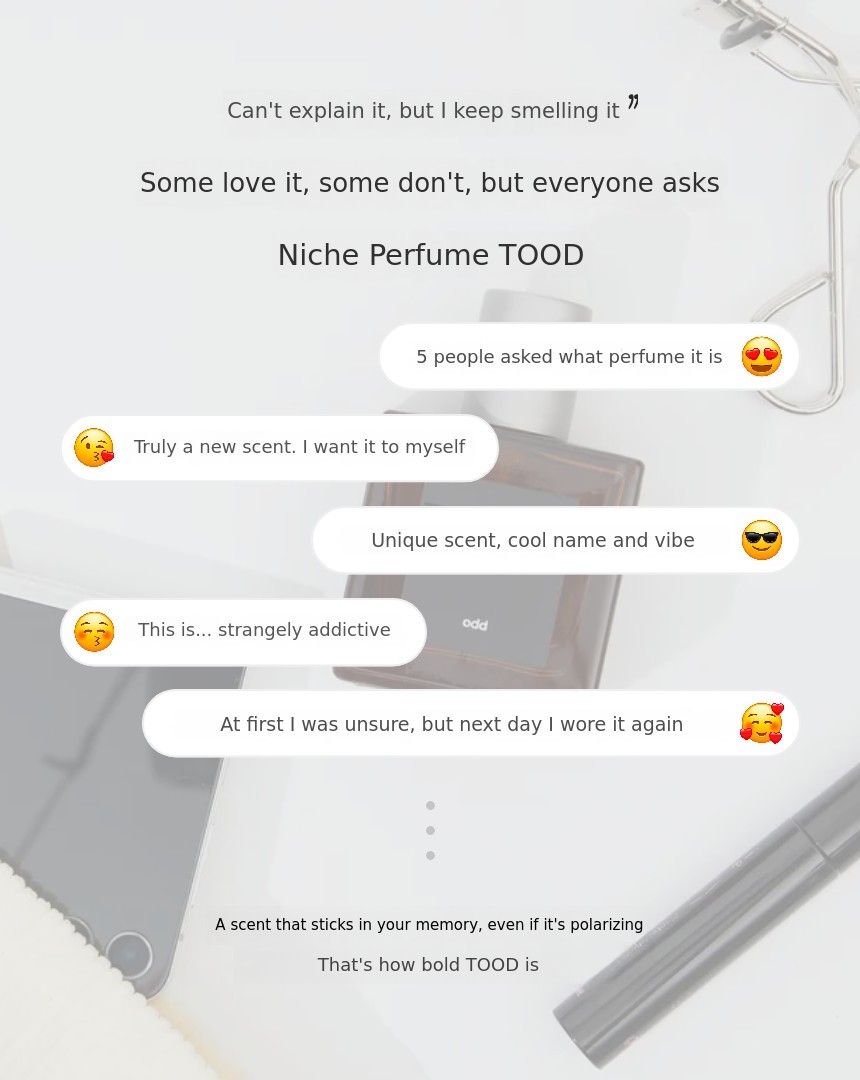 TOOD is not just a simple perfume, but a 'fragrance with a story' crafted directly by a perfumer.