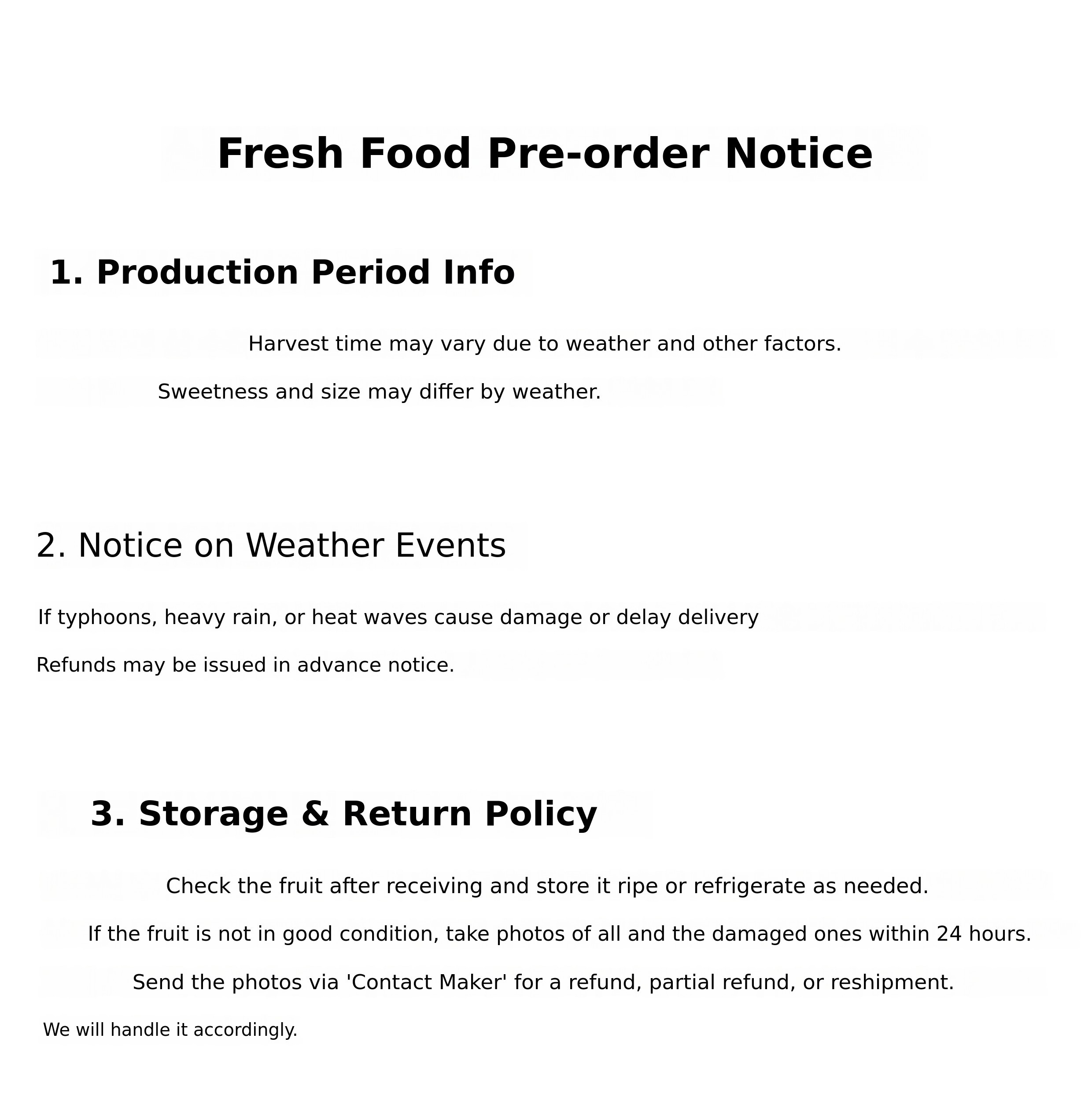 If there is any issue with the strawberries, please contact the maker with a photo within 24 hours of receipt, and we will handle it promptly. - Shipping method: Sequential or batch shipping.