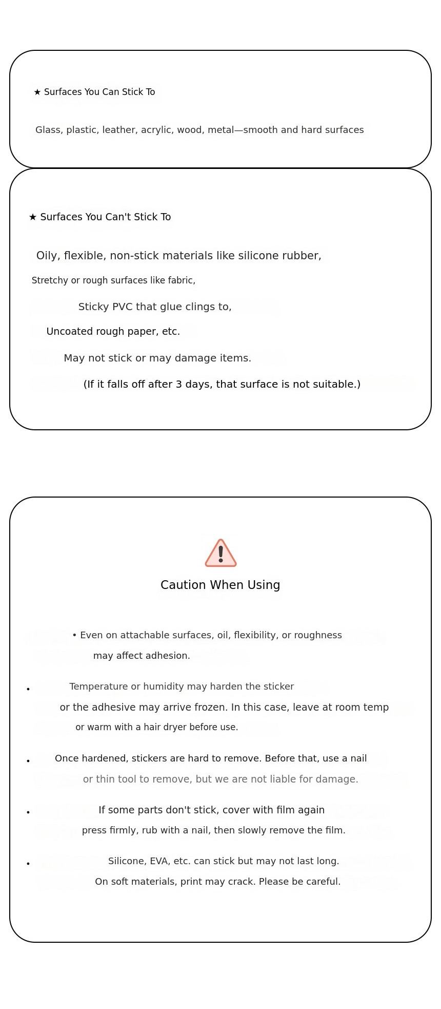 Due to the nature of silicone material, adhesion may be difficult depending on the product surface.