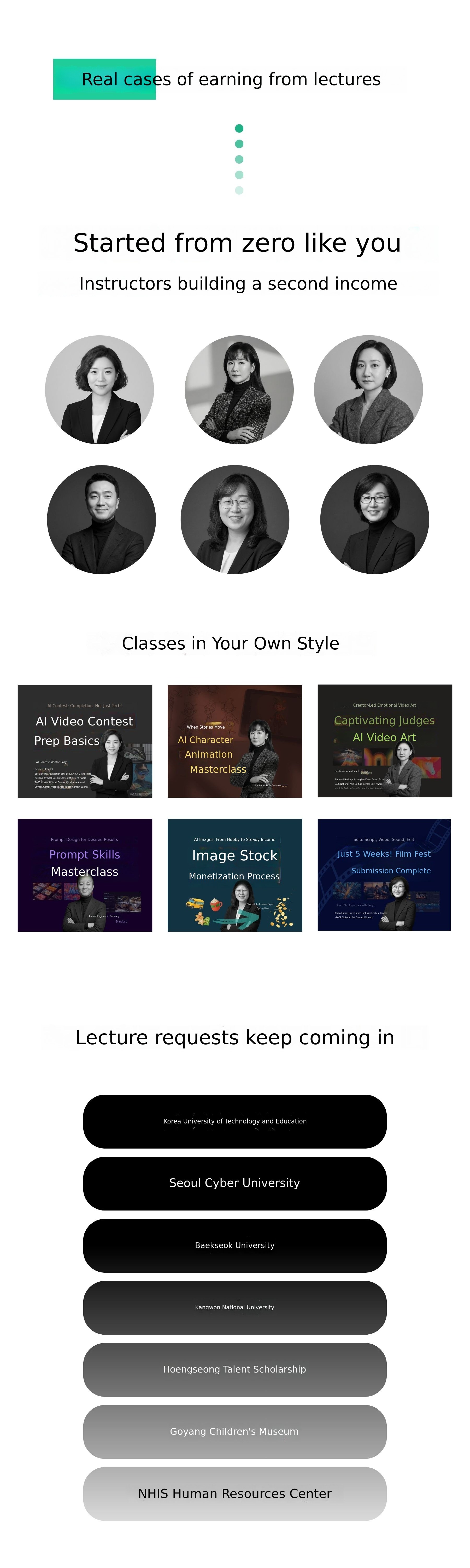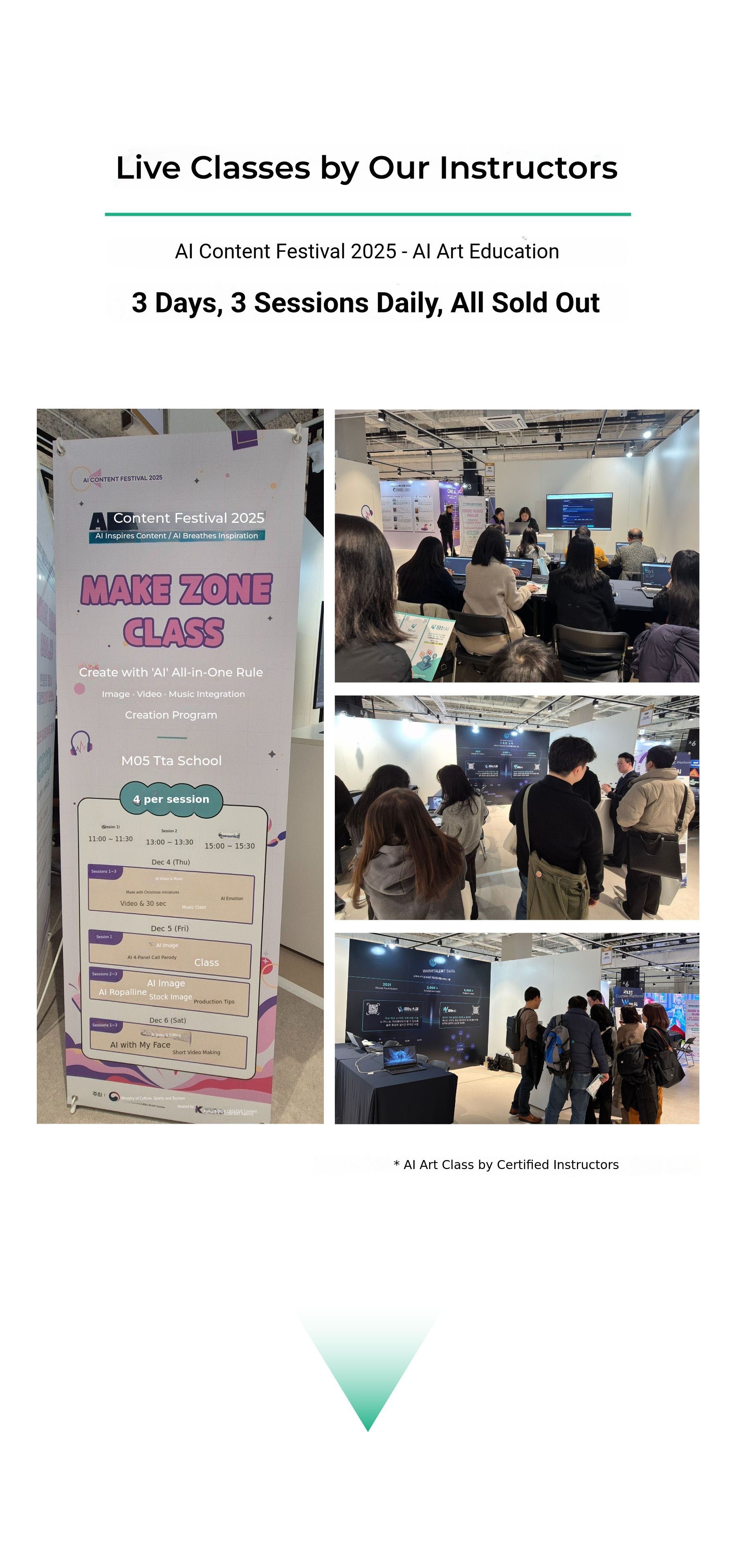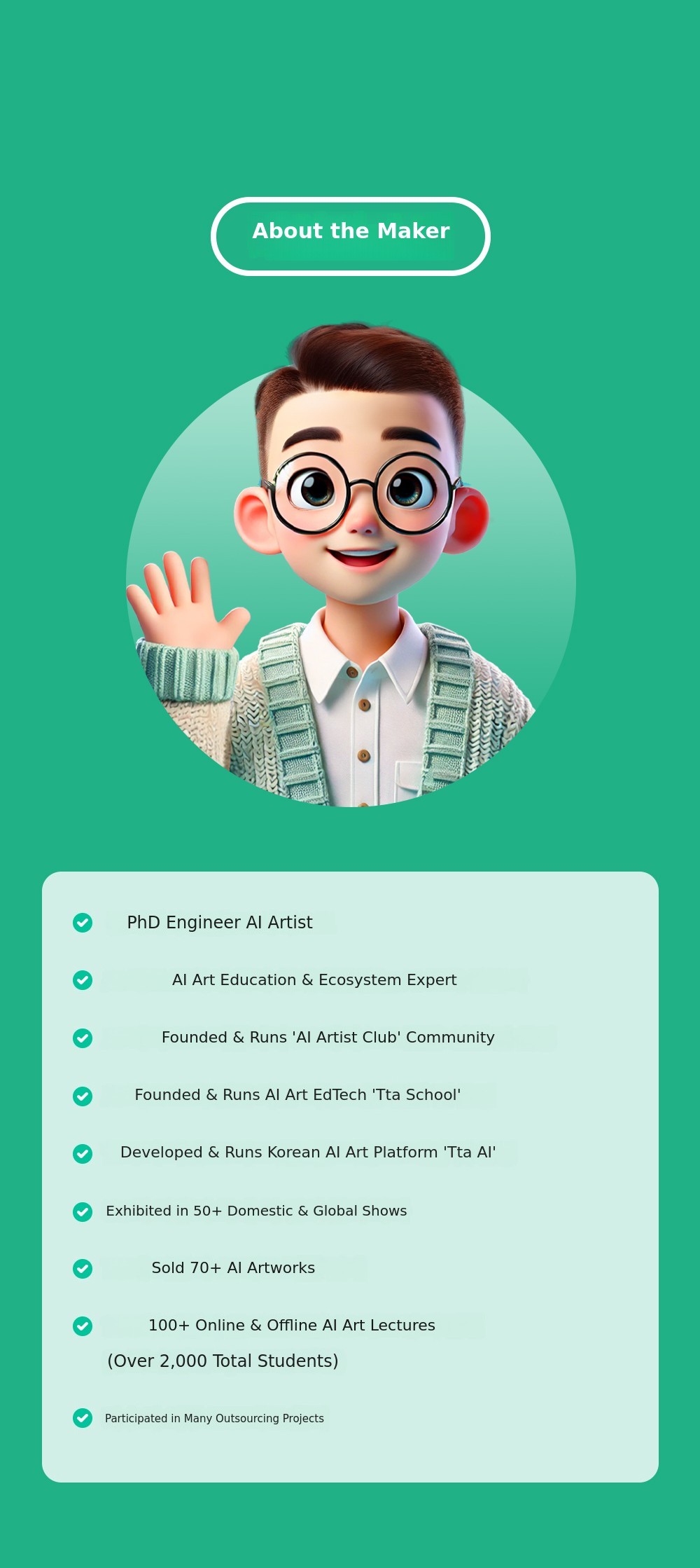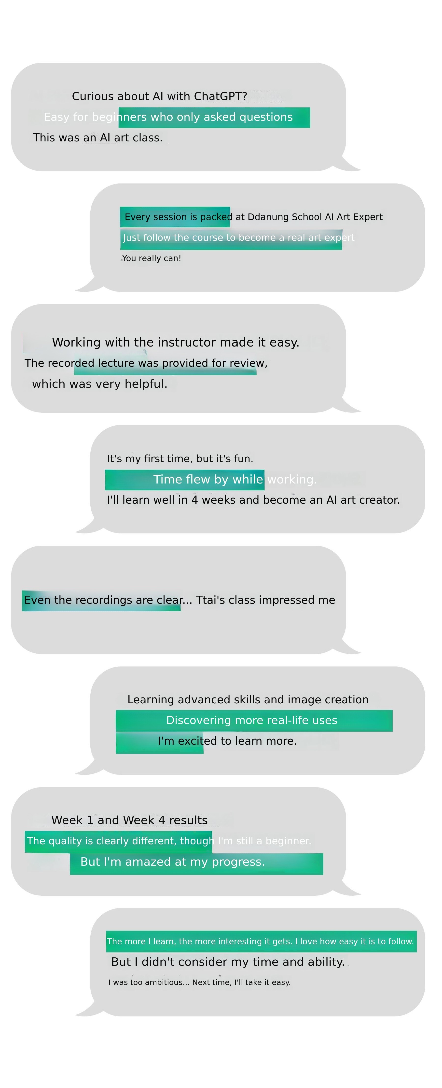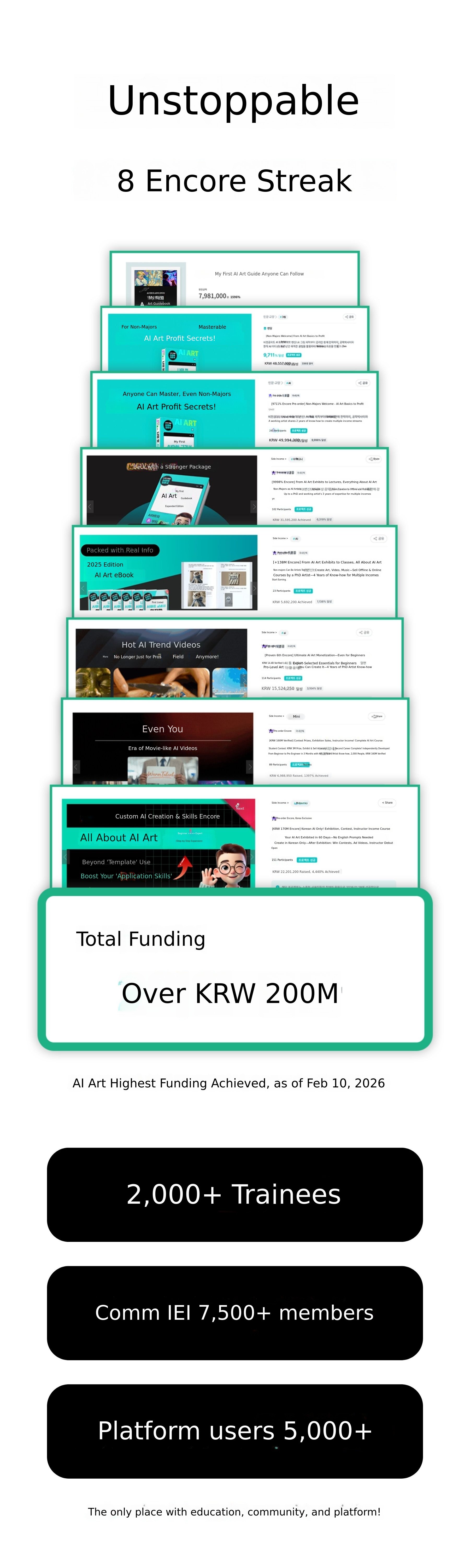 A1. This course is led by Danung, a fourth-year AI artist who has conducted over 100 AI art lectures. The five weekly missions and one live lecture per week are designed to focus only on the core elements, allowing for efficient learning. In fact, many participants who completed the Expert Package are now working as AI art instructors.
