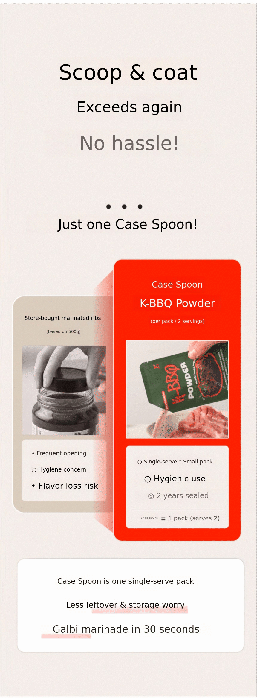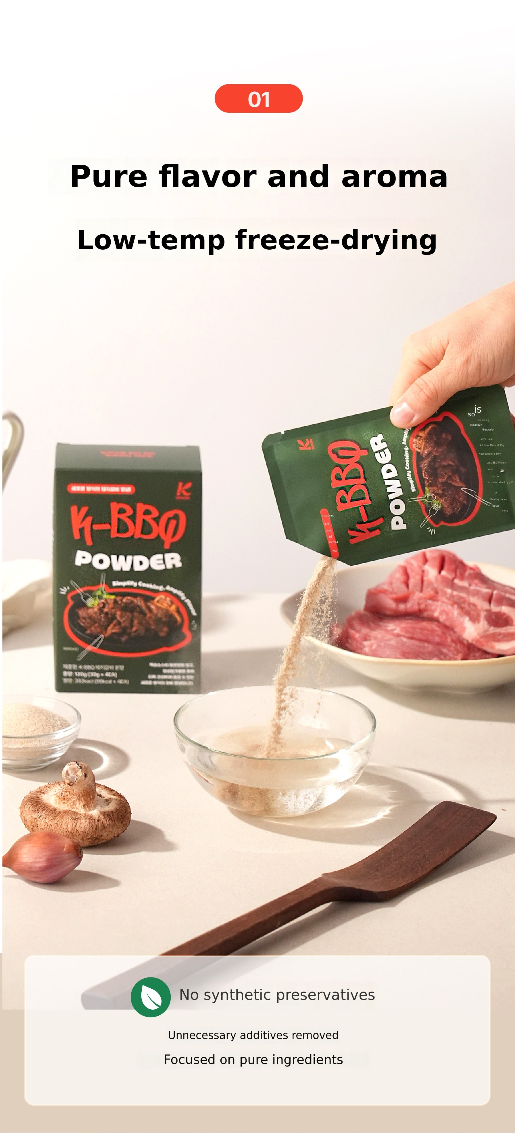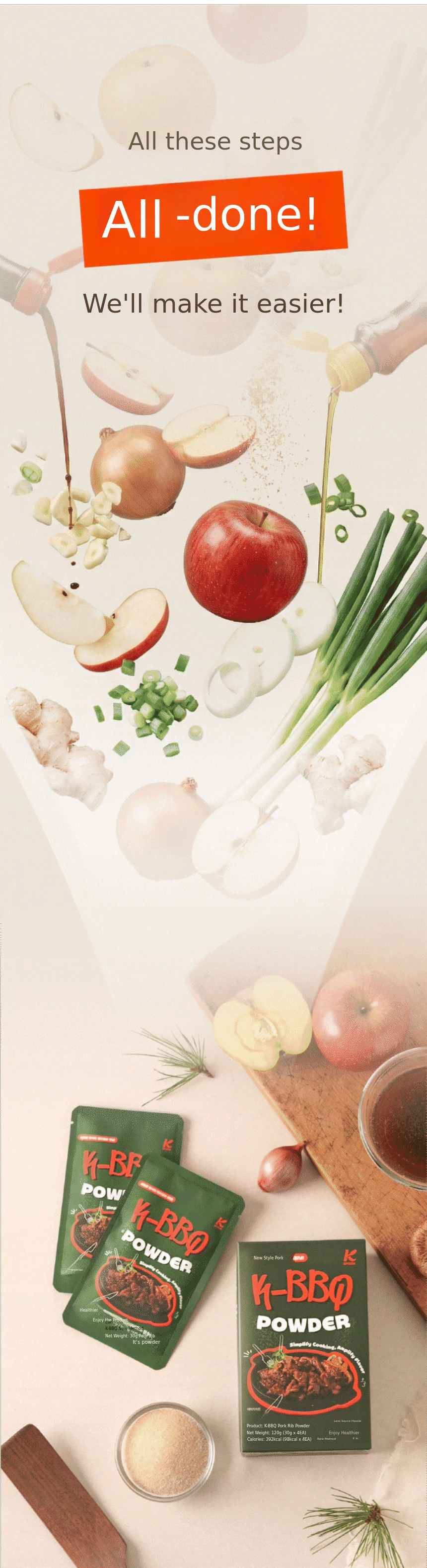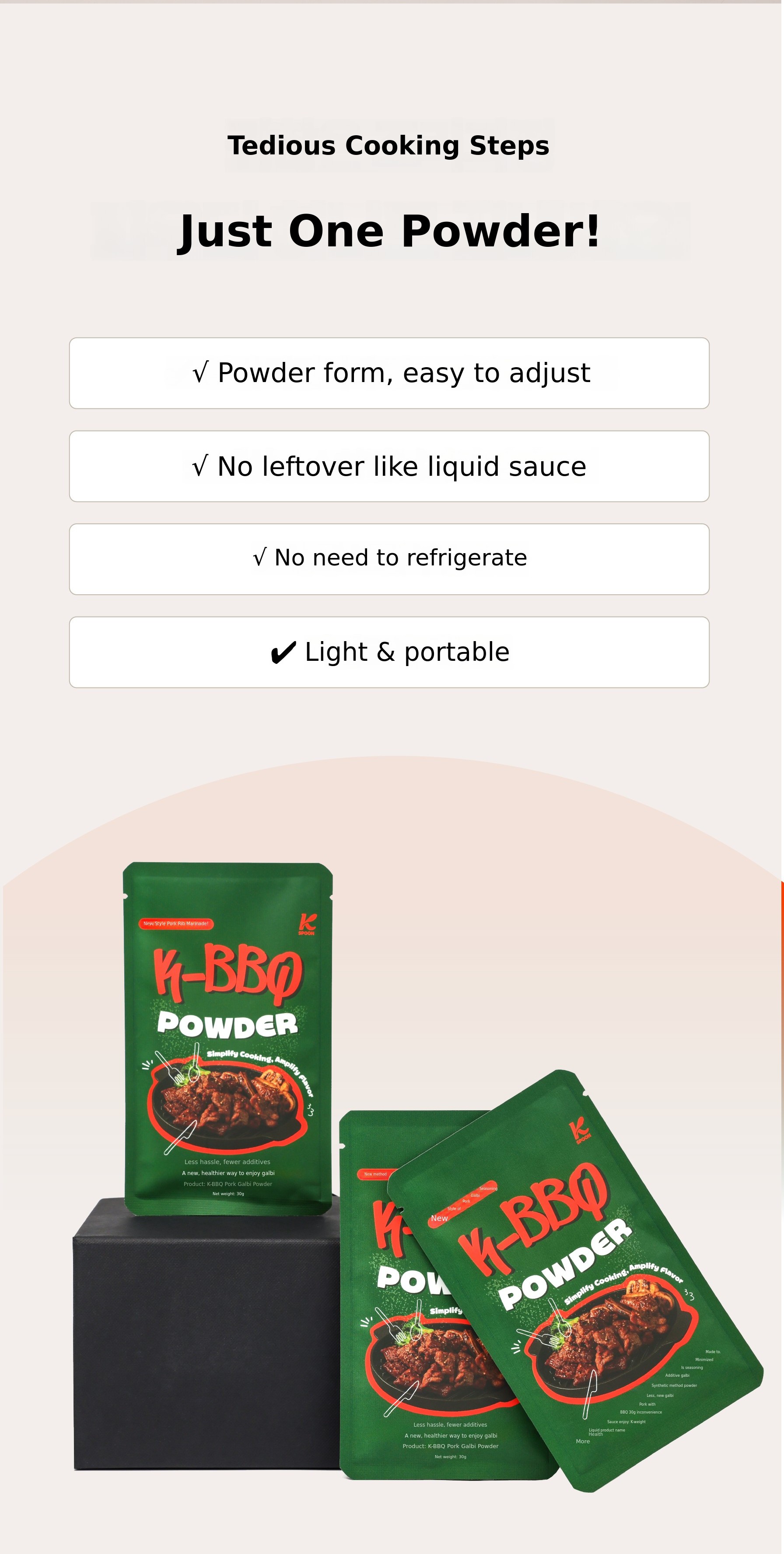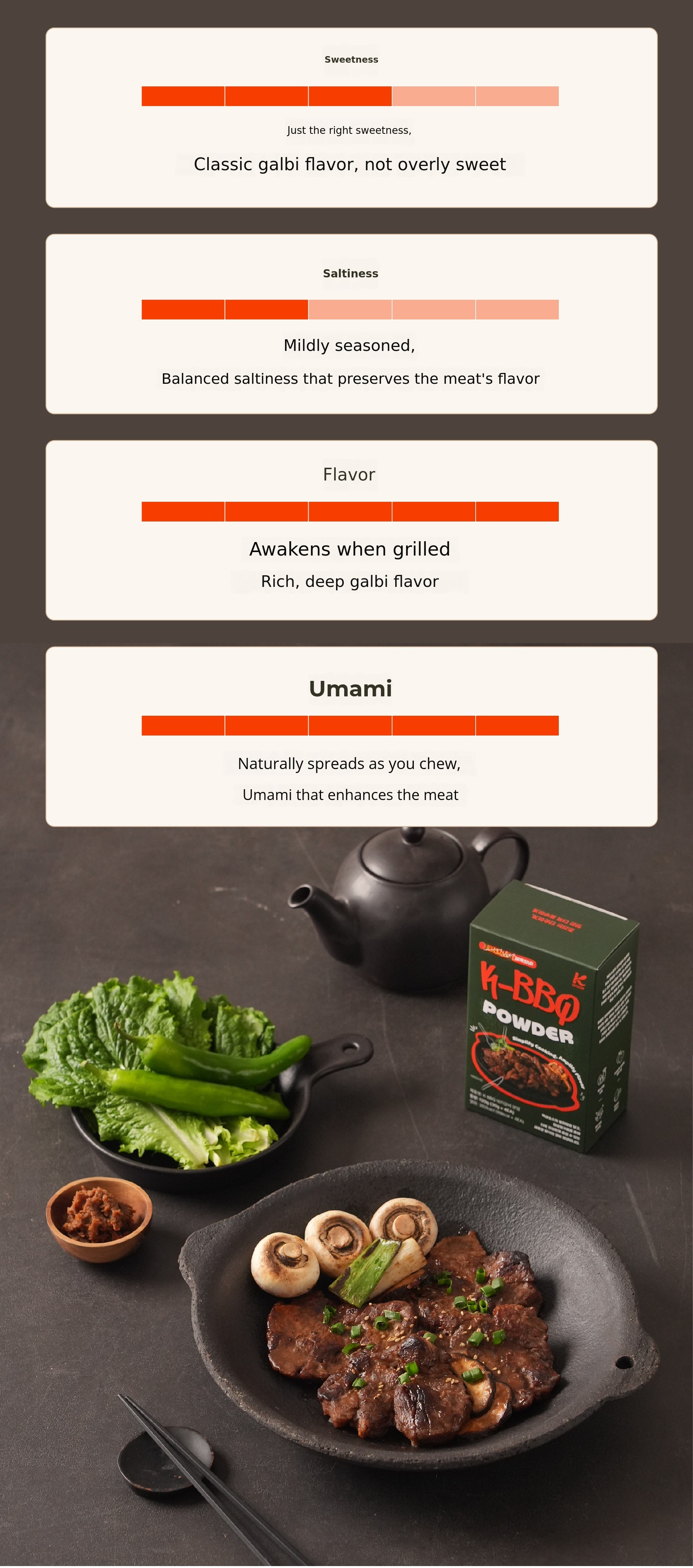 For this K-BBQ Galbi Sauce Powder, we repeated dozens of cooking tests,