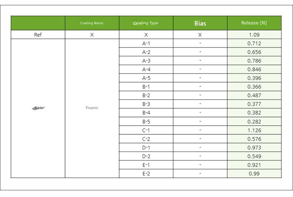 ■ TIRAMICRelease property measurement evaluation- Razor blade release test