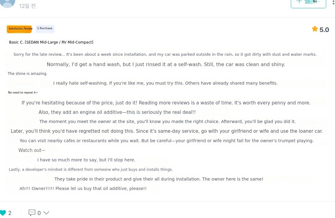 - Illegal painting or Vehicles with unheated paint cannot be coated, and if funding has been made, the funding amount cannot be refunded.