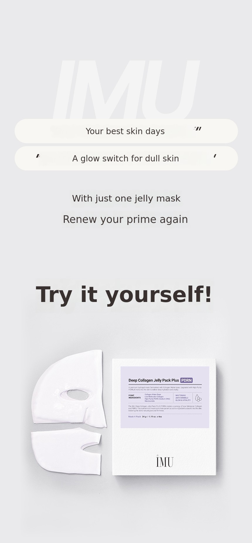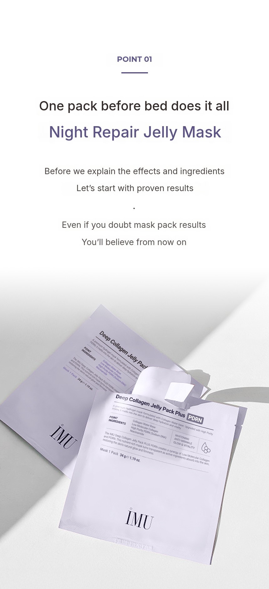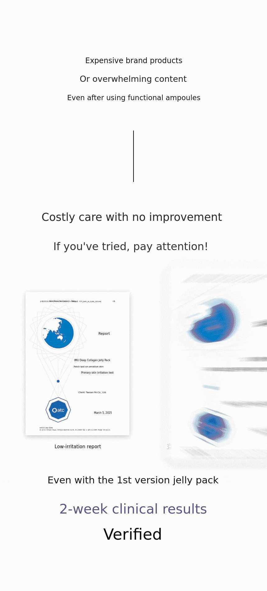 Many people sigh in front of the mirror, saying, "I'm too old for this now," or "It's already too late." However, IMU has spent the past two years relentlessly researching only collagen and the essence of skin, and we have become confident.
