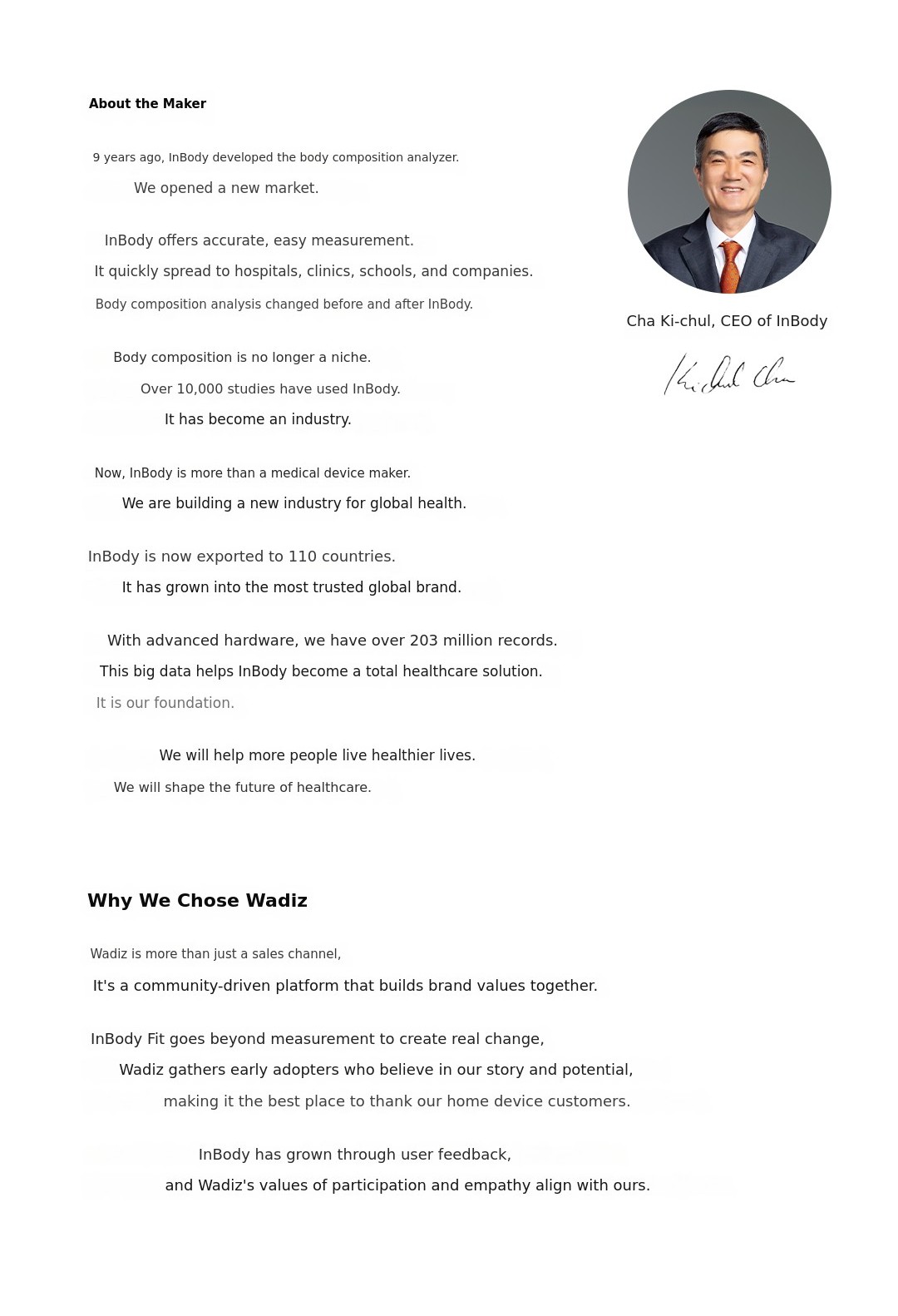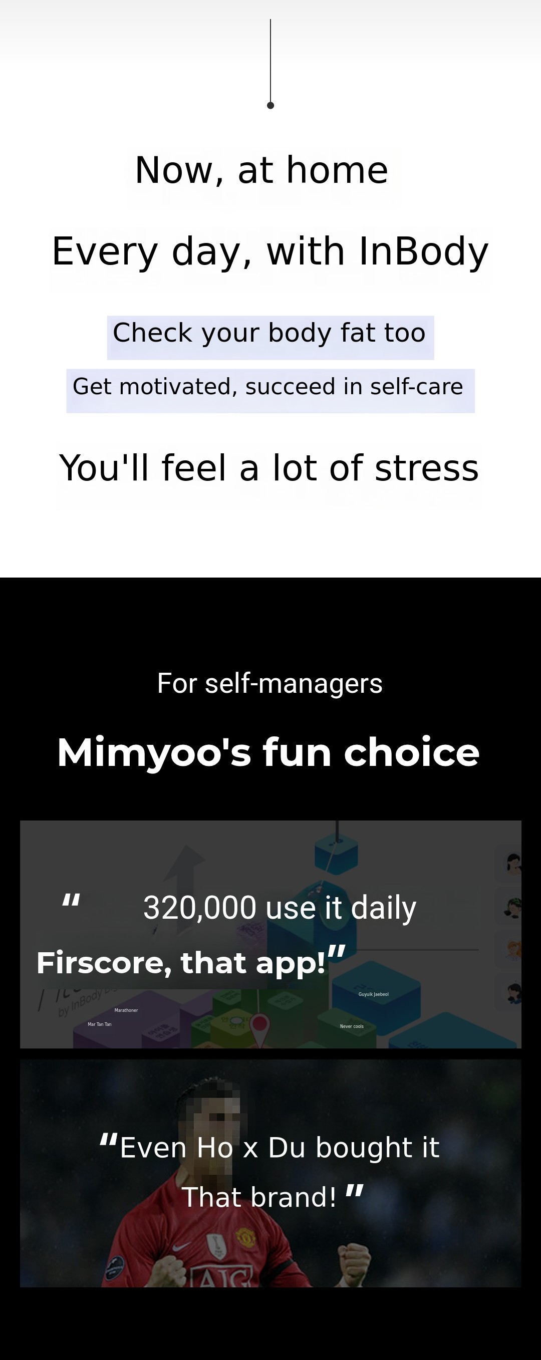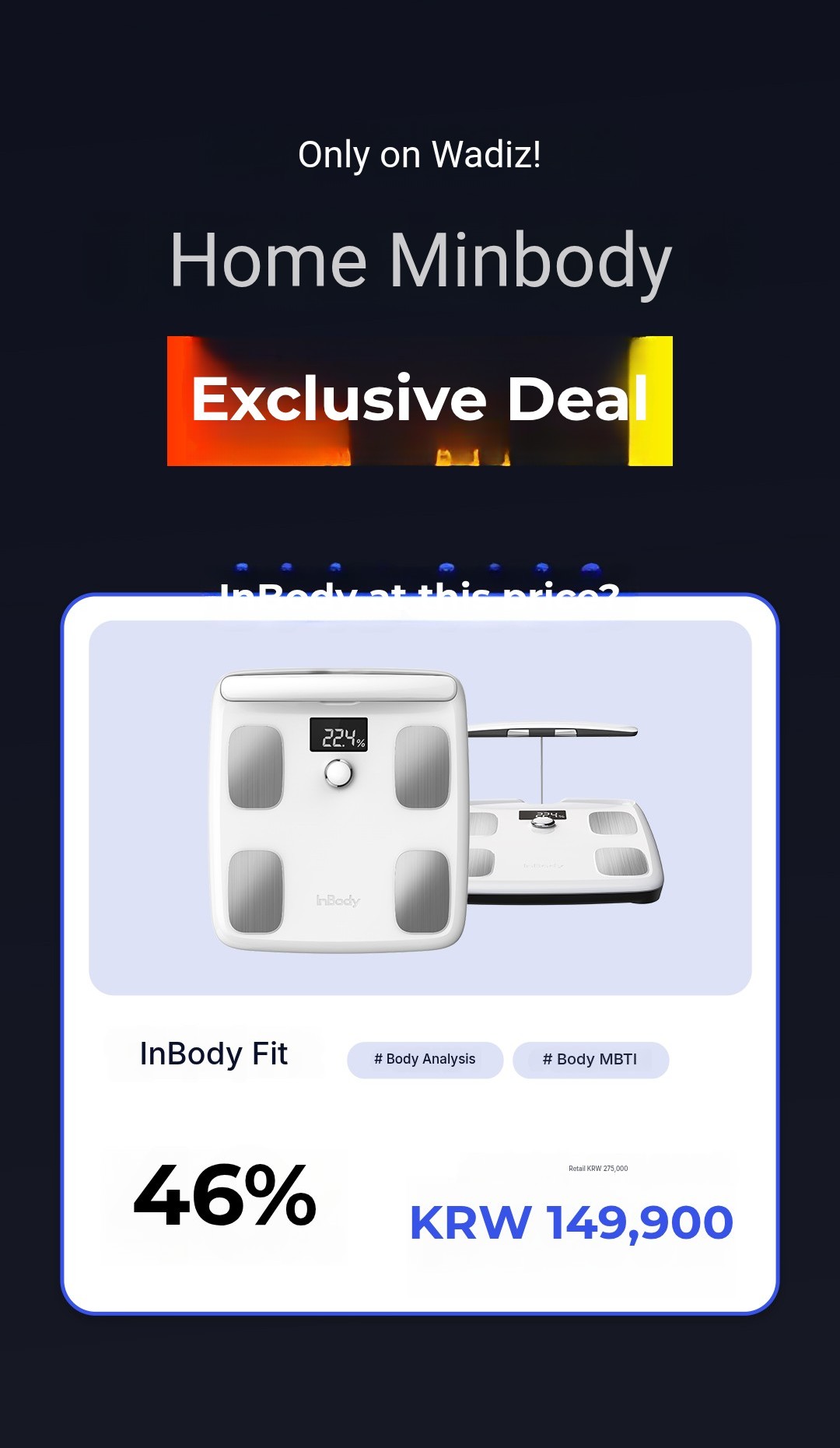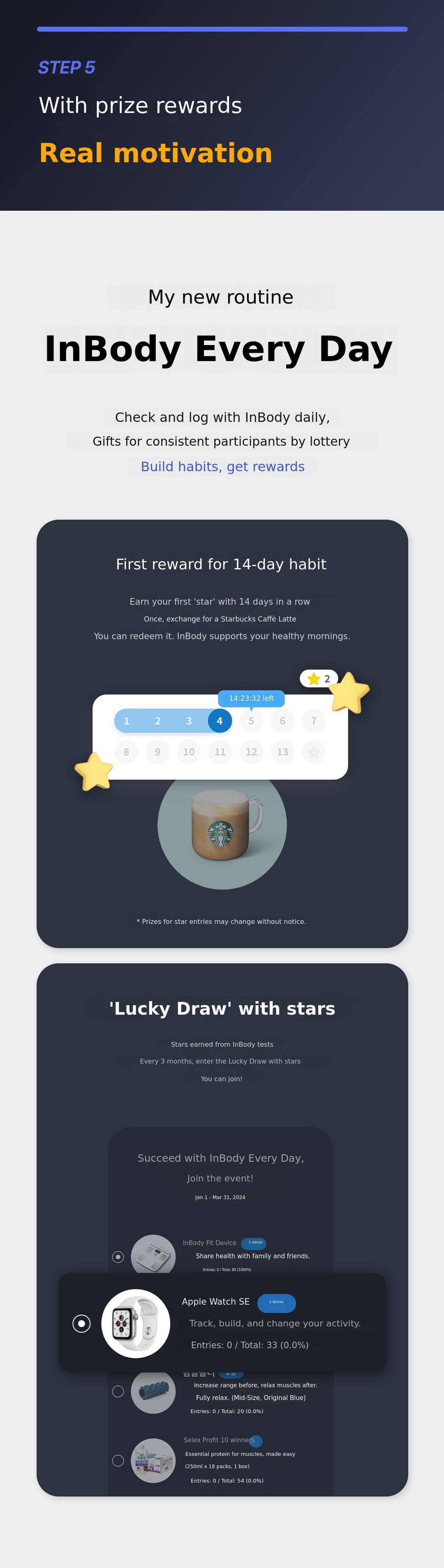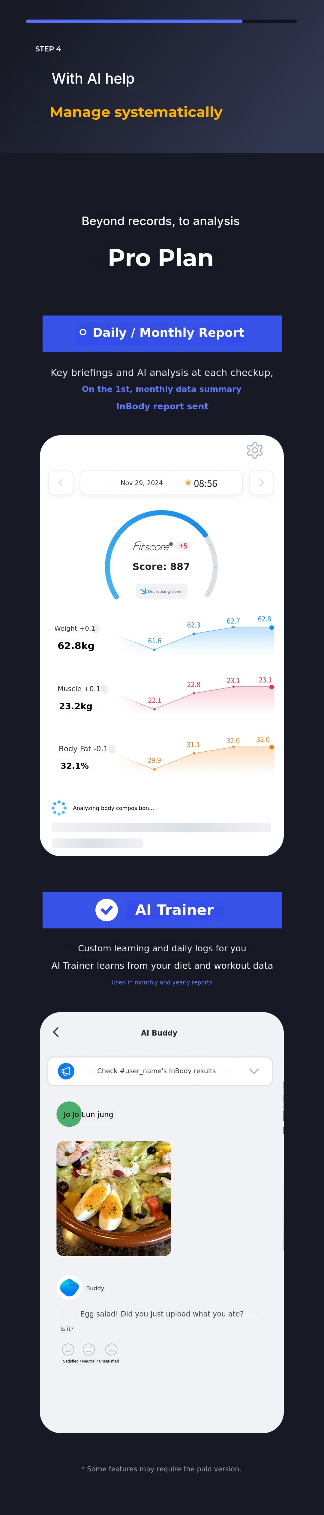1. π AI-powered InBody Composition Analyzer - Provides body composition measurement and personalized analysis with AI and InBody tech 2. π Home-based Body Composition Solution - Enables easy body composition measurement and real-time data monitoring at home 3. π Motivational Reward System - Offers prizes for consecutive tests to encourage consistent health management
