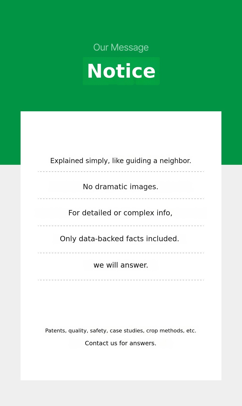 We are not just a simple fertilizer distributor. We design and share mixing ratios and fertilization manuals based on empirical evidence, and continue our research. We aim to deliver innovative vitality to your companion plants and crops.