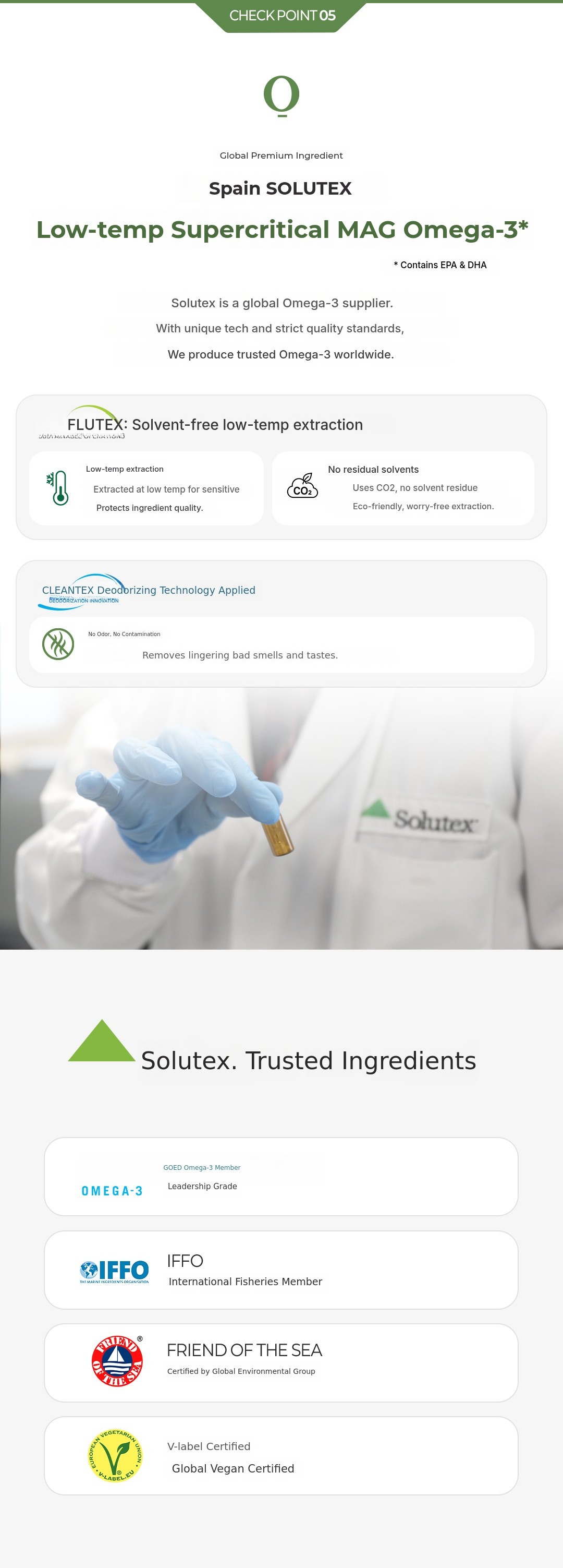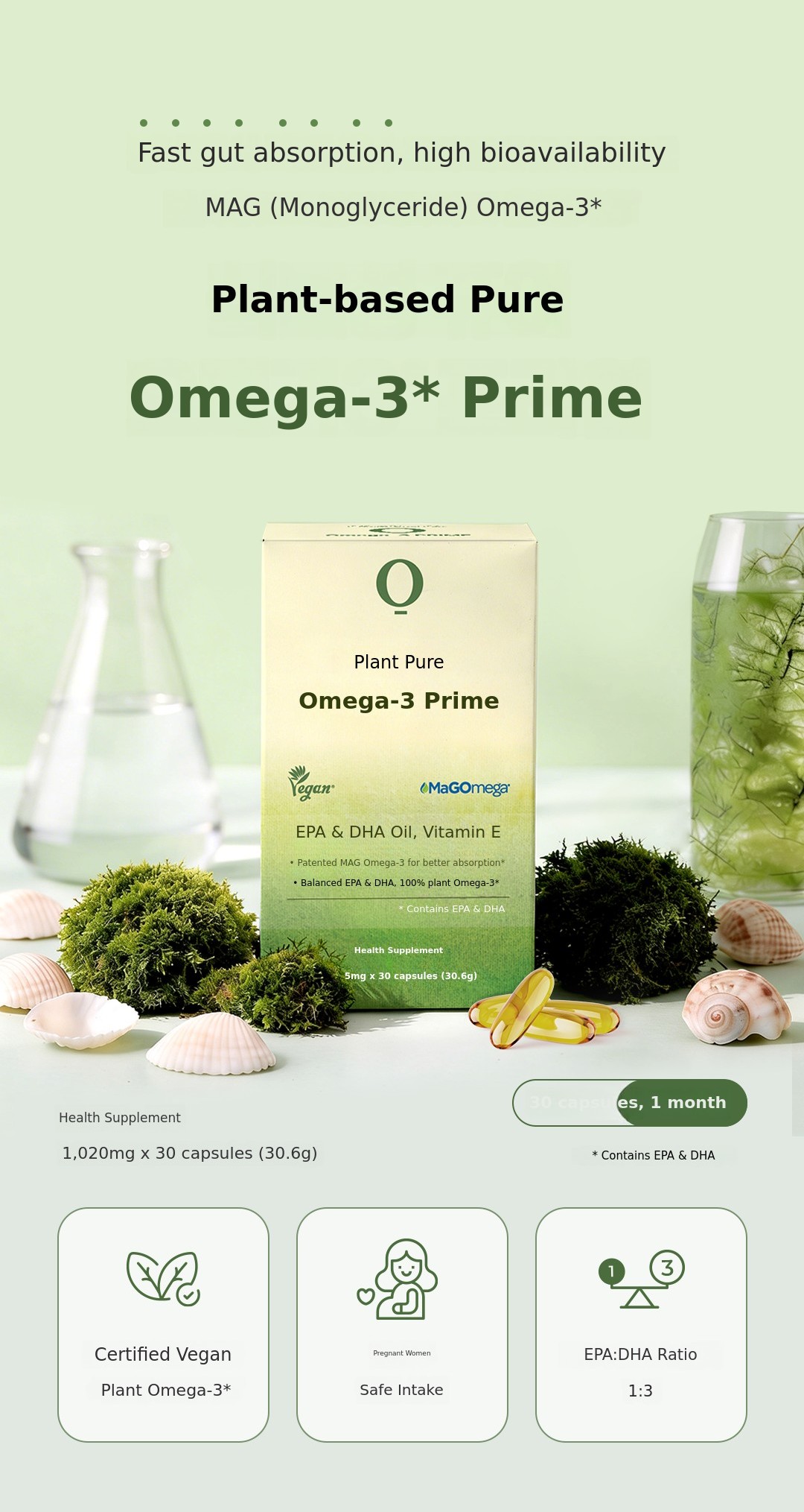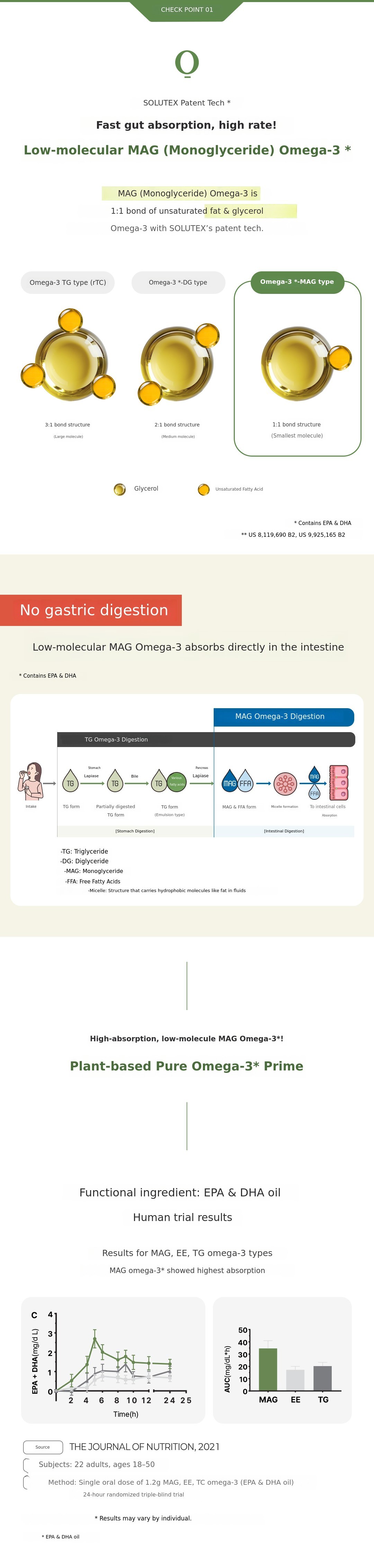 Low-molecular MAG Omega-3 with high absorption rate.