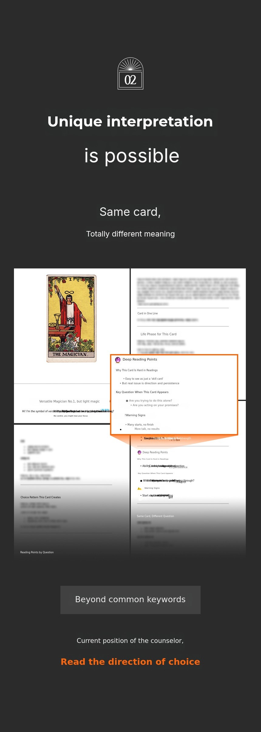 I combined the intuition of Young Tarot with the script analysis skills from my acting days. Instead of memorizing the cards, I started reading them as story structures.