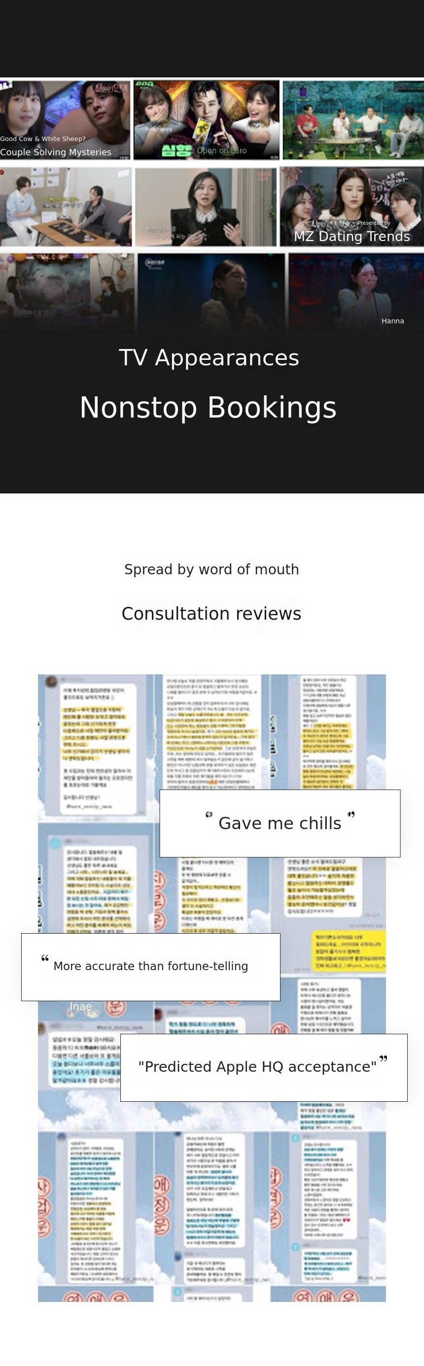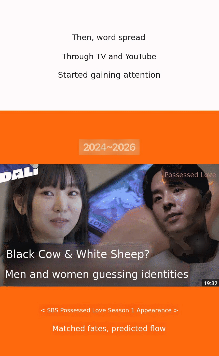 In my first year, I was invited to appear on SBS's 'Possessed Love' and accurately predicted a destined couple on the show. From then on, celebrities, entrepreneurs, and even shamans started seeking me out.