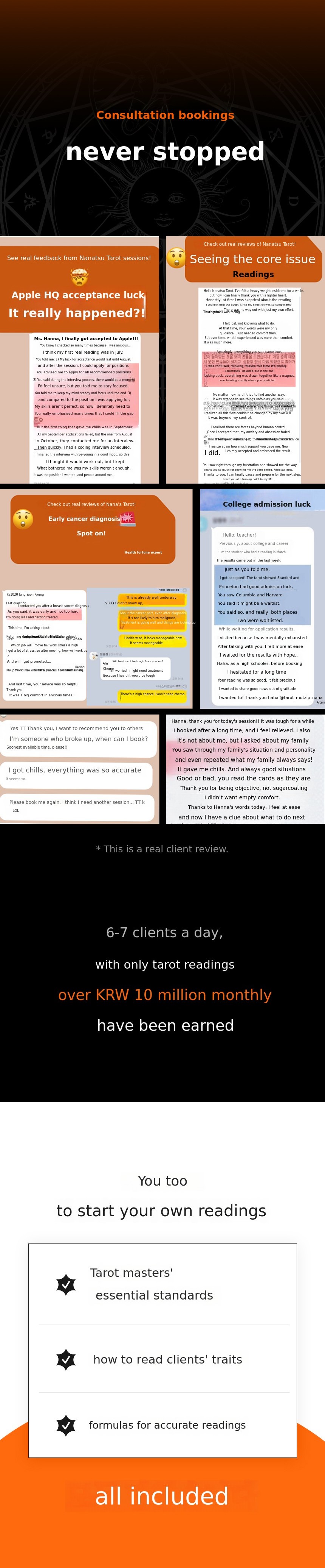 The content ranges from beginner to advanced levels. It is neither too easy nor too difficult, so even professional tarot masters can learn new interpretation methods. The branding strategy section is especially helpful for those in the field.