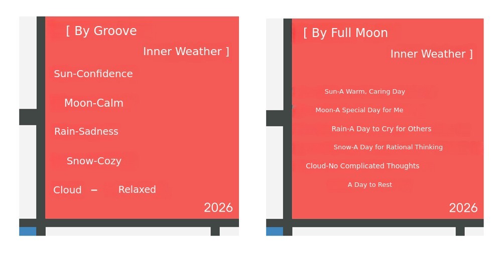 (Example, Groove: Sun-confidence, Moon-calmness, Rain-sadness, Snow-warmth, Cloud-relaxation)