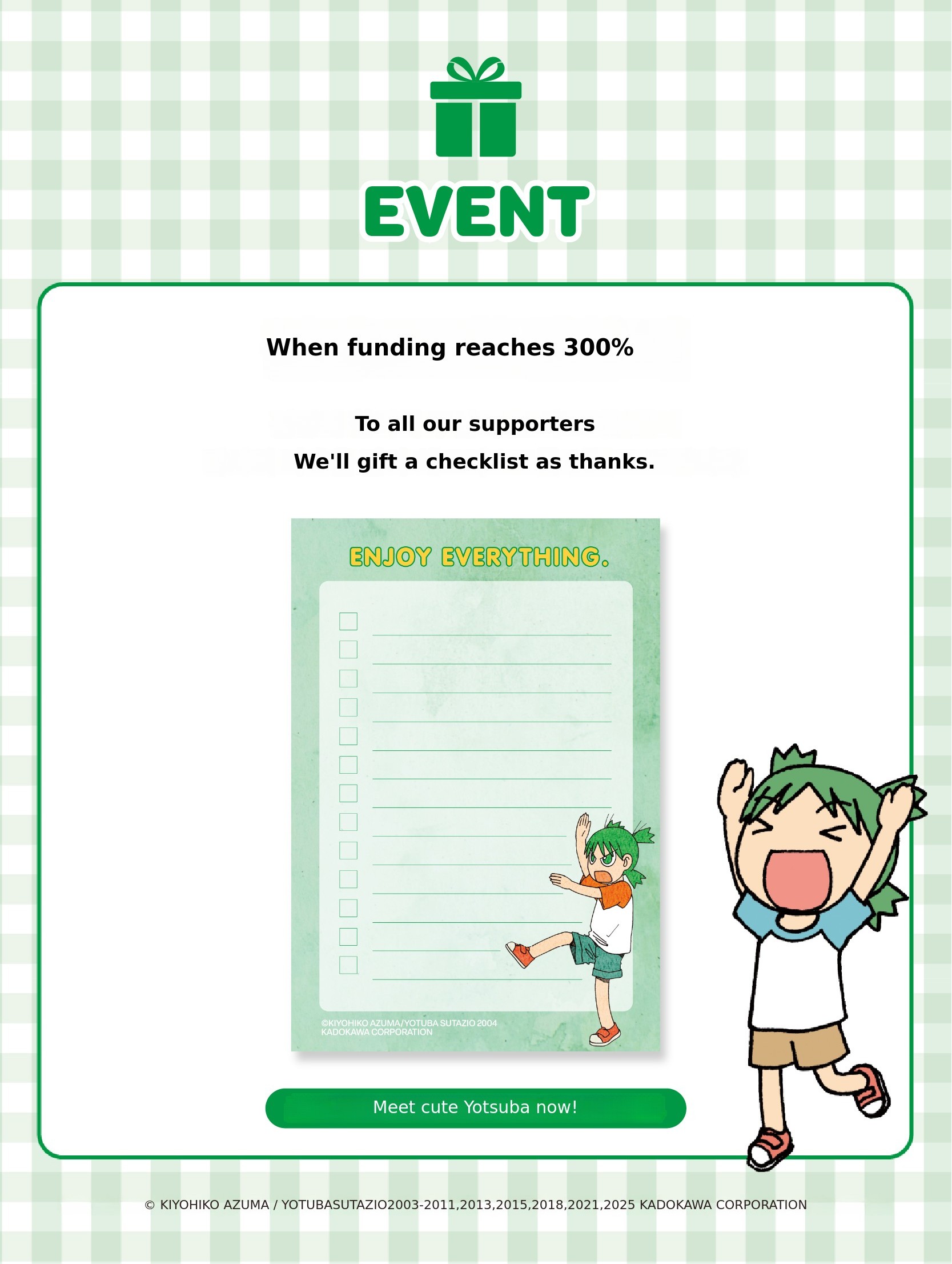 To be the first to share the news of the first domestic funding for <Yotsuba&!> with fans,
