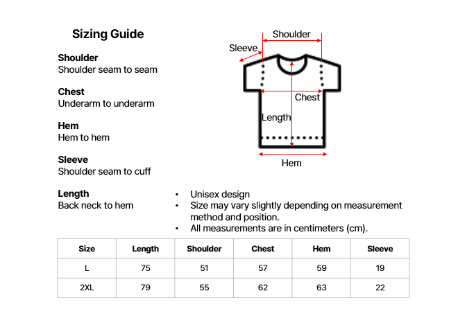 - Please refer to the size chart below for detailed measurements.