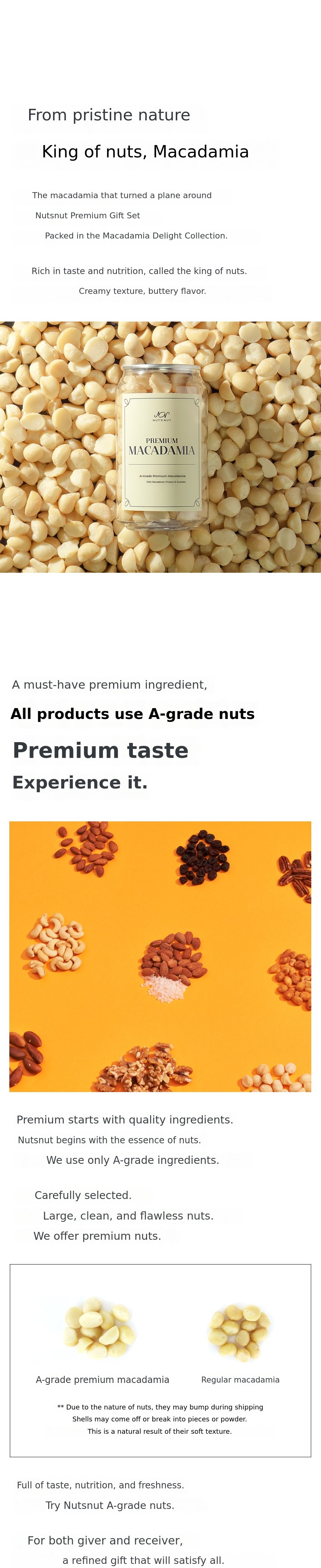 Nutsnut offers nature's ownGrade A premium We deliver both taste and freshness by including only nuts.