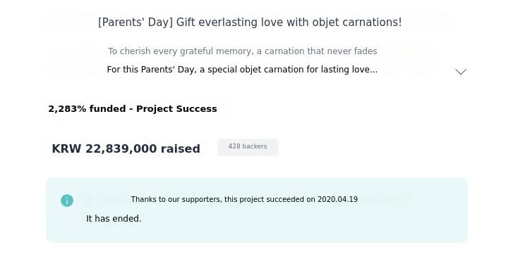 Shipping is scheduled to begin sequentially from Monday, May 1st. (Detailed schedule will be announced again through an update after the funding ends. We will do our best to ensure delivery before Parents' Day.)