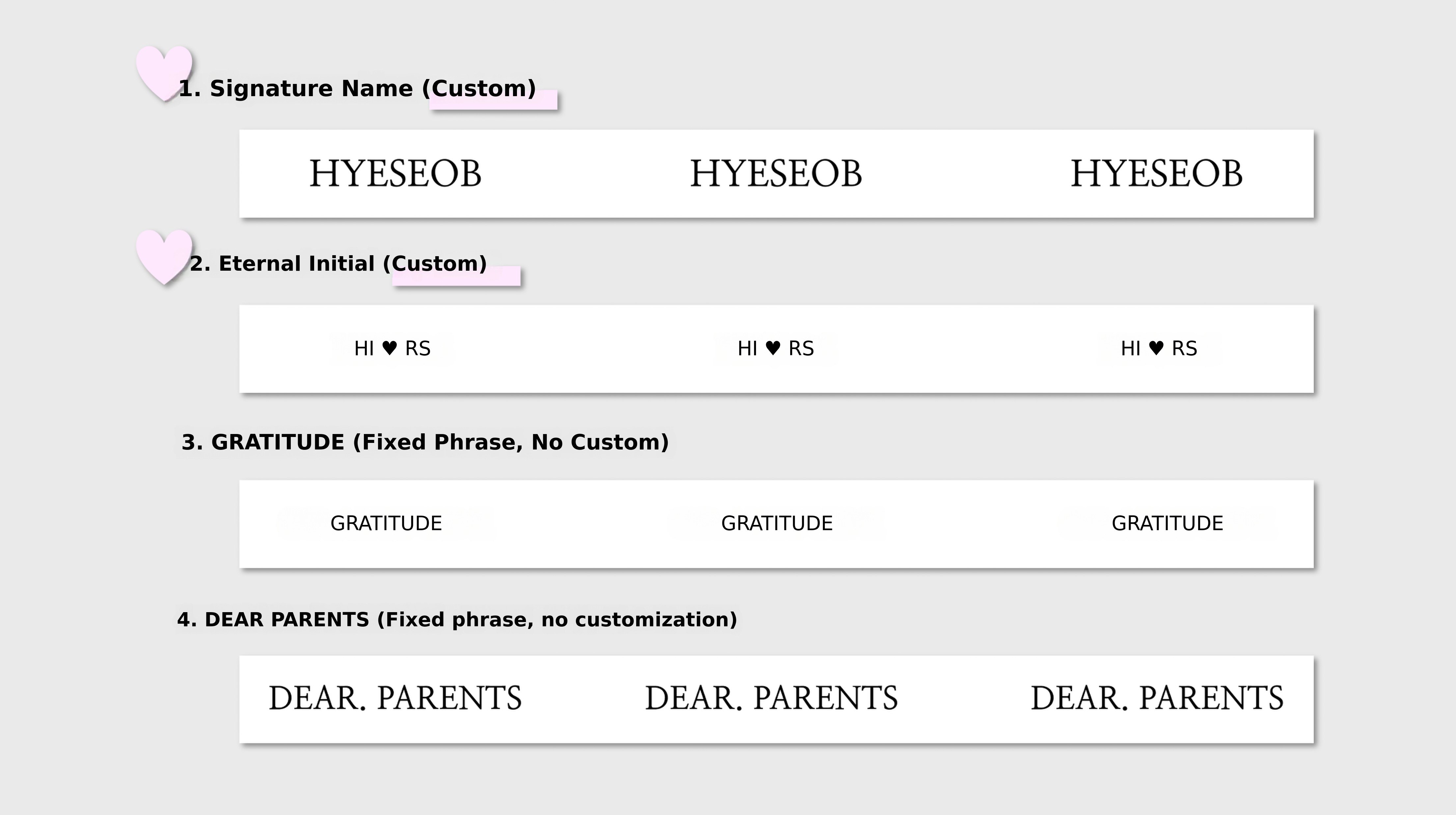 A2. This edition was designed to achieve the unique, refined balance of the English font. Unfortunately, this funding does not support engraving in Korean or numbers. If you provide your name in English, Le Célène will craft it with the most beautiful proportions we pursue.
