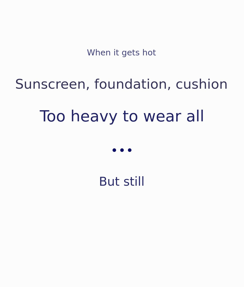 So I changed my thinking. Instead of avoiding it,let's find a way to accept it with less discomfort. A sun care product that even sensitive skin can use without burden, and that doesn't feel stuffy under the sun. This product wasn't made to block sunlight,but as a choice to get along well with the sun.☀️