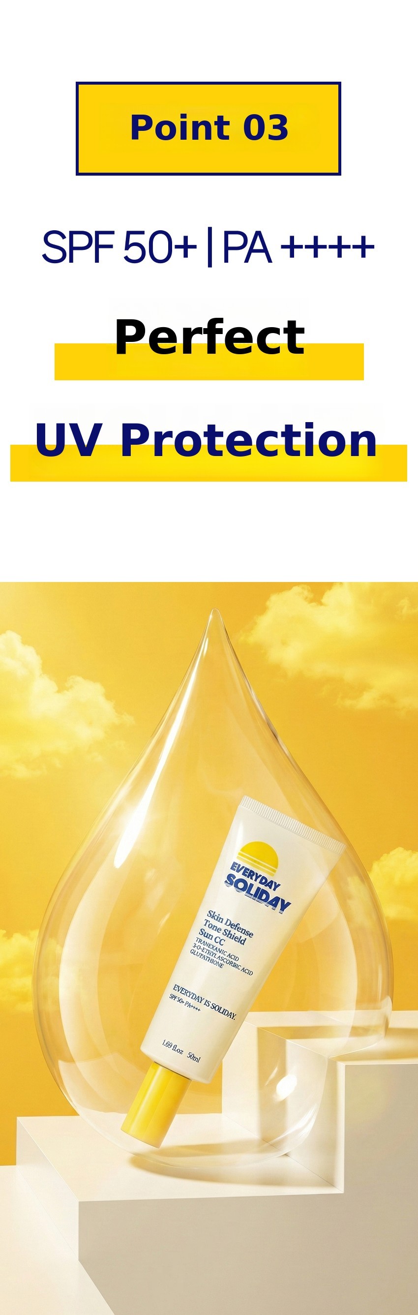 •SPF50+: Effectively blocks UVB rays, making it suitable not only for daily use but also for extended outdoor activities.
