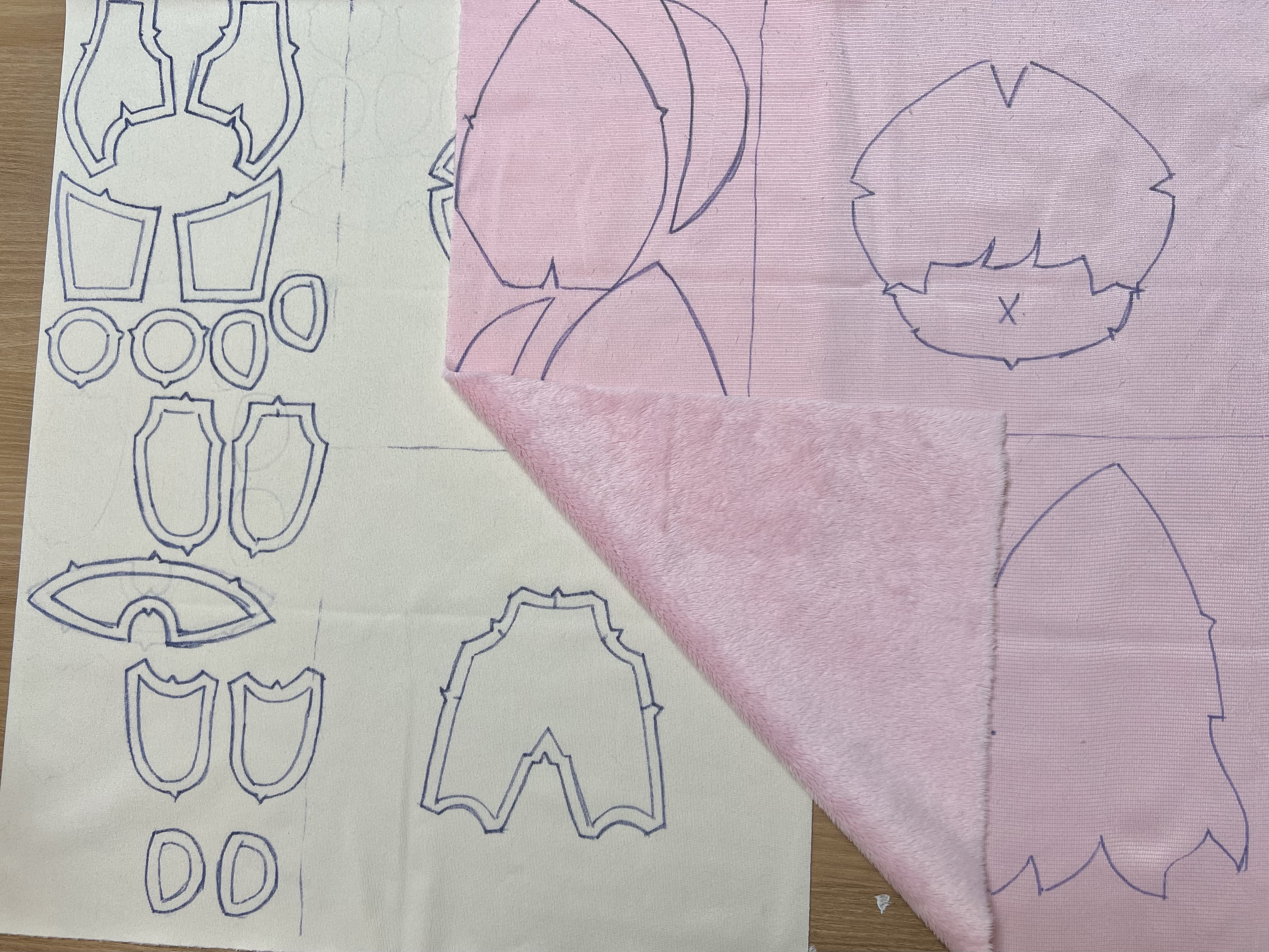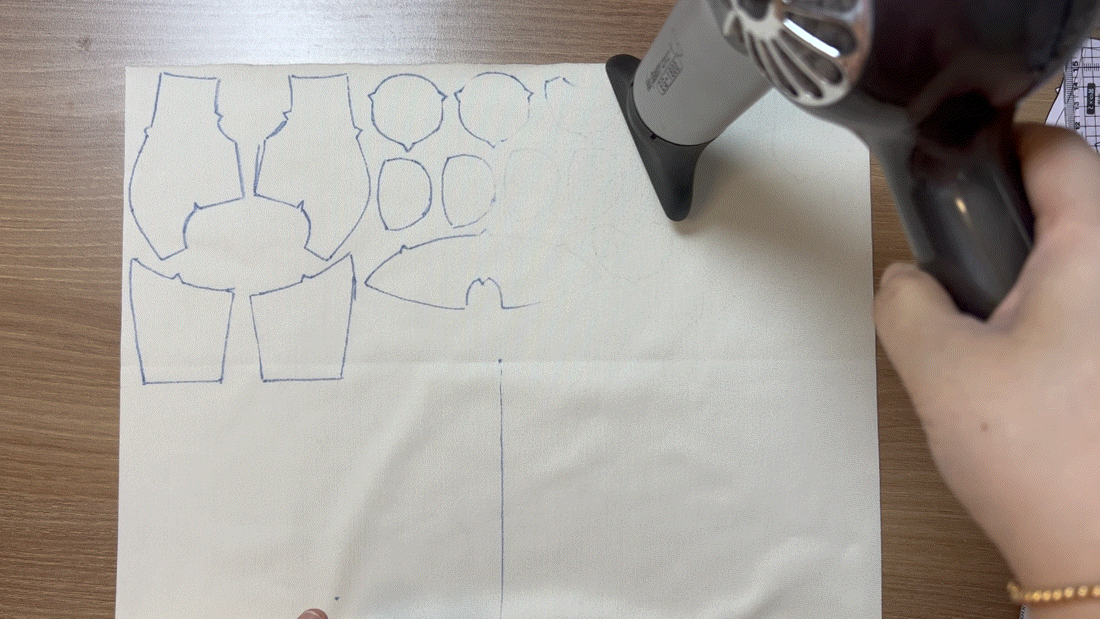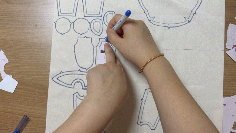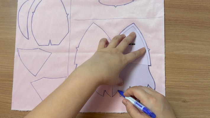 on the skin fabric,draw the pattern before cutting,