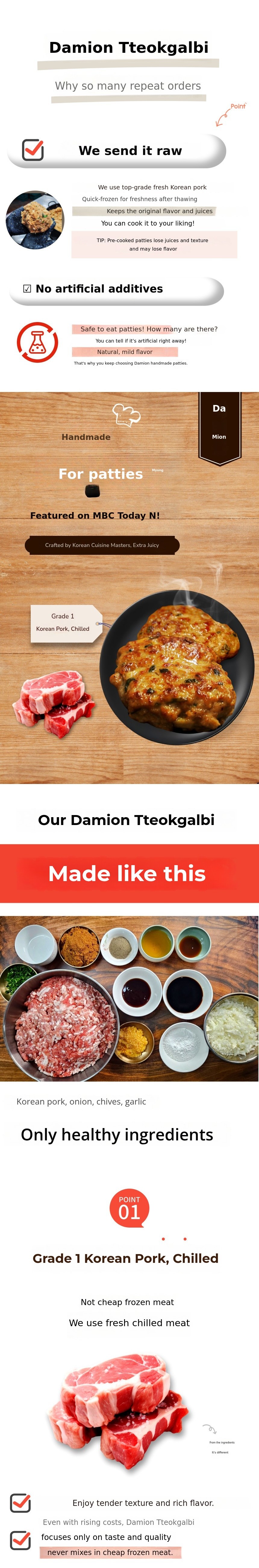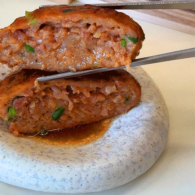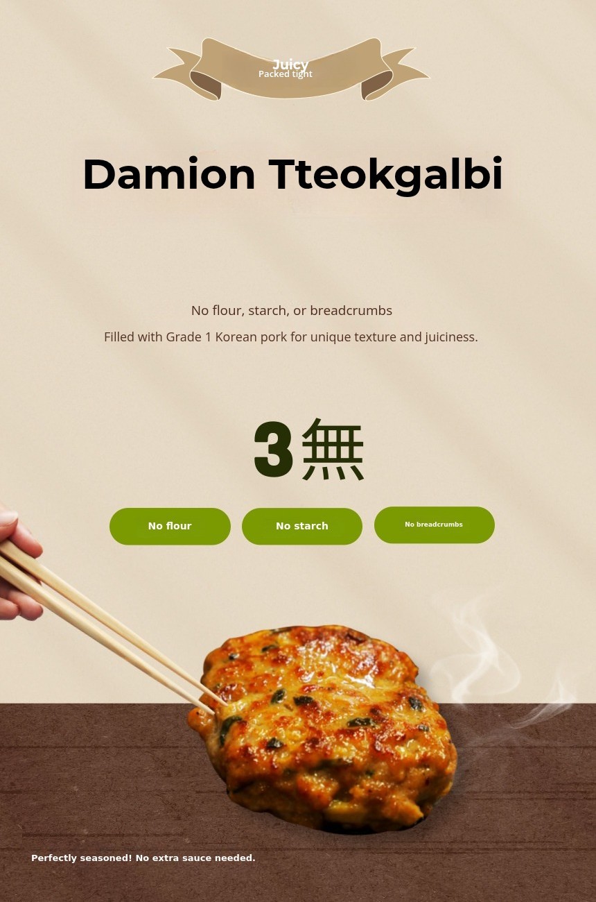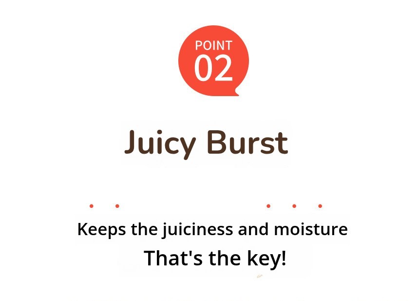 3. With commercial products, the initial oil frying causes loss of meat juice, but with Damion products, when the consumer grills it directly,the surface is seared for the first time, causing the Maillard reaction, which occurs properly and locks in the meat juices completely inside,maximizing juice retention.