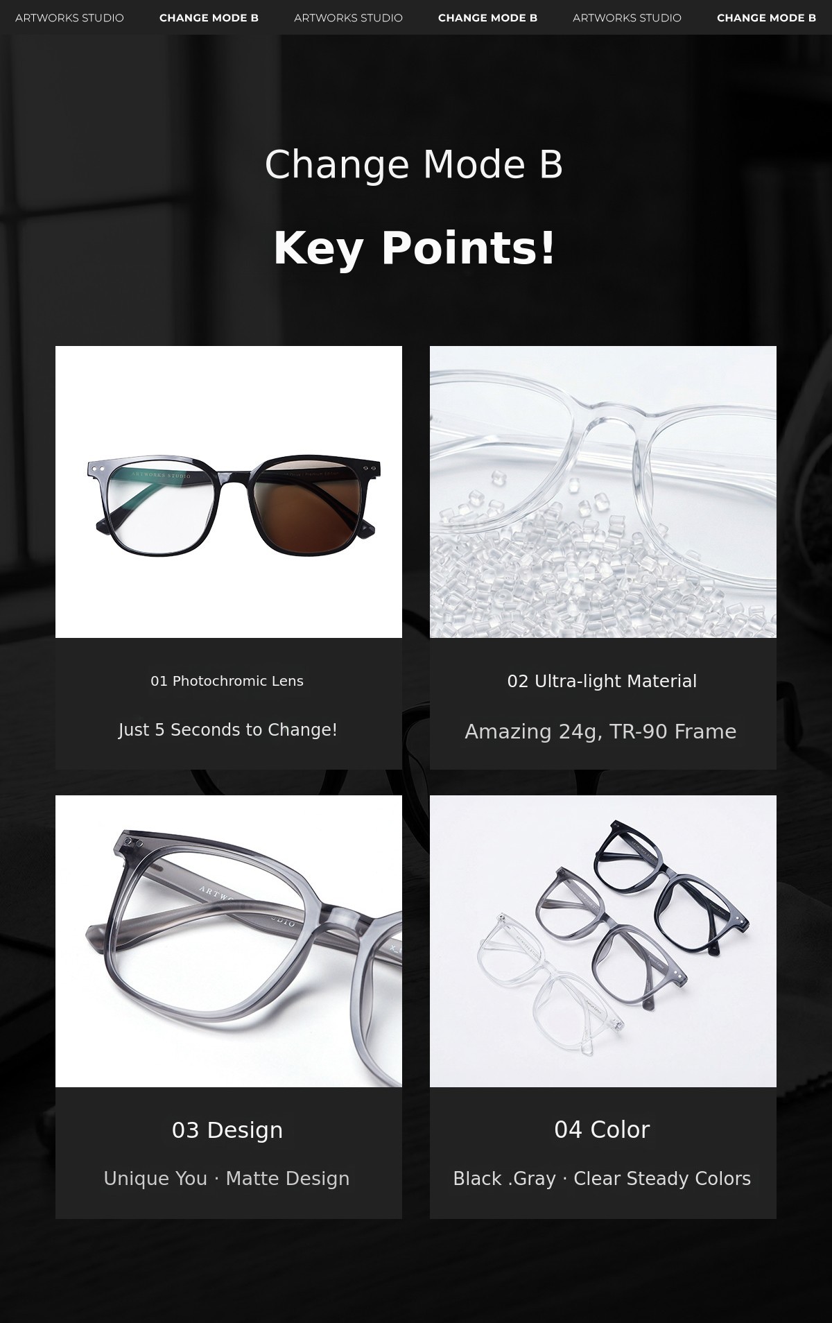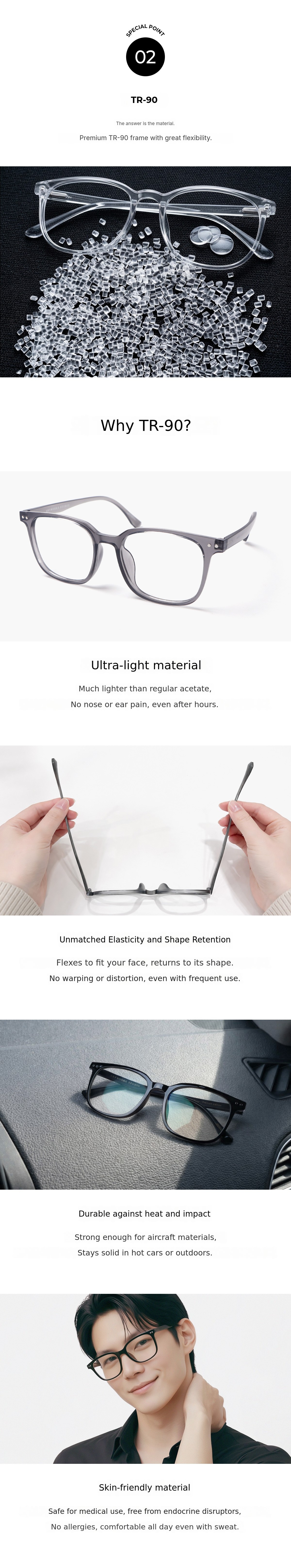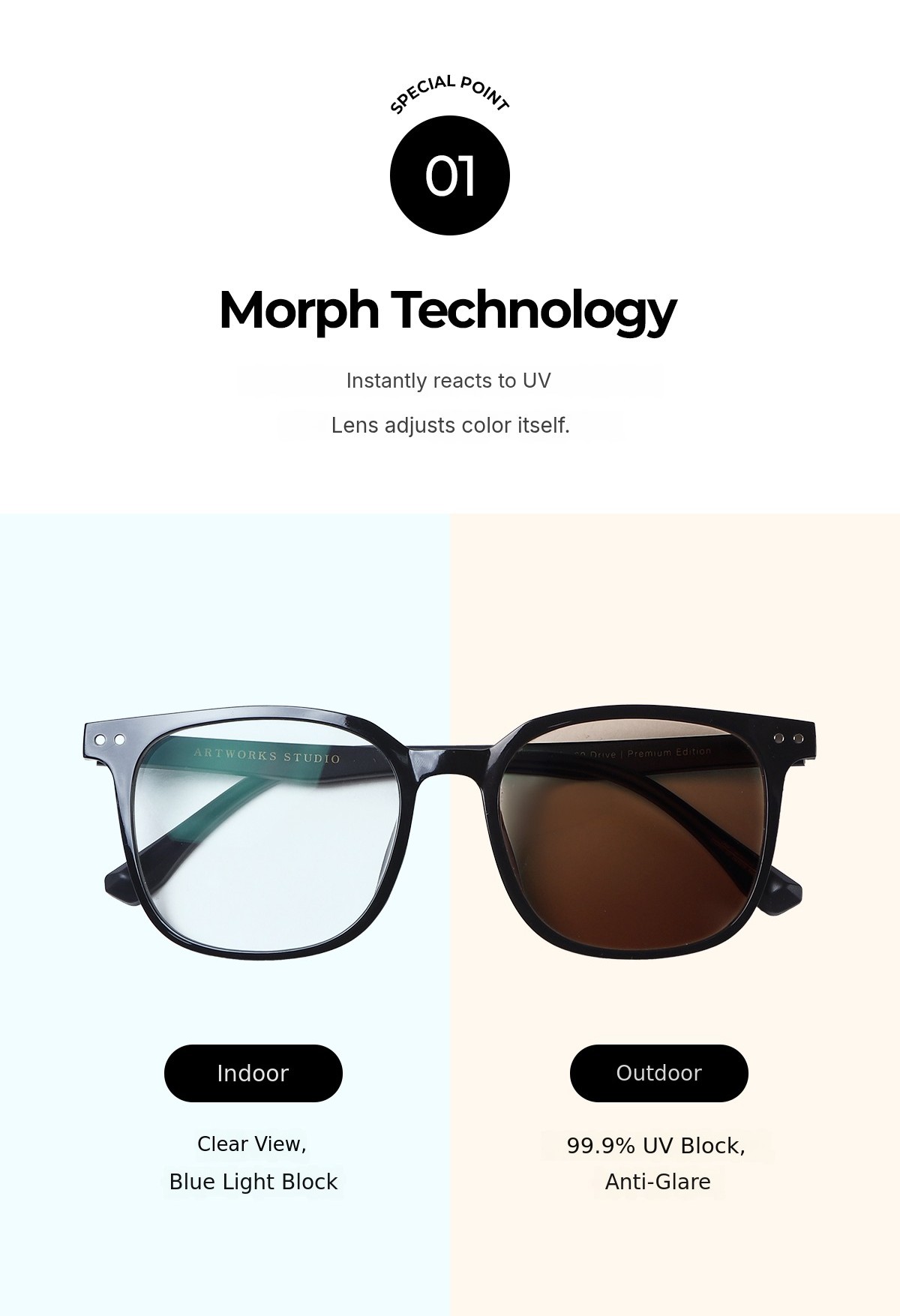 1. ๐ถ๏ธ Smart Photochromic Glasses - UV-blocking lenses that change color in 5 seconds 2. โ๏ธ Ultra-light TR-90 Frame - 24g weight ensures all-day comfortable wear 3. ๐ Exclusive Set Package - Includes premium case, warranty, and microfiber cloth