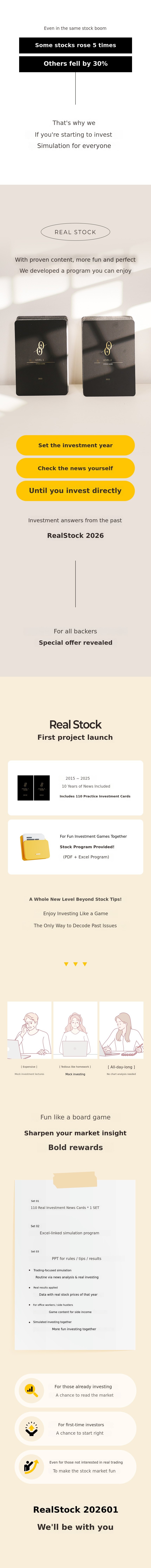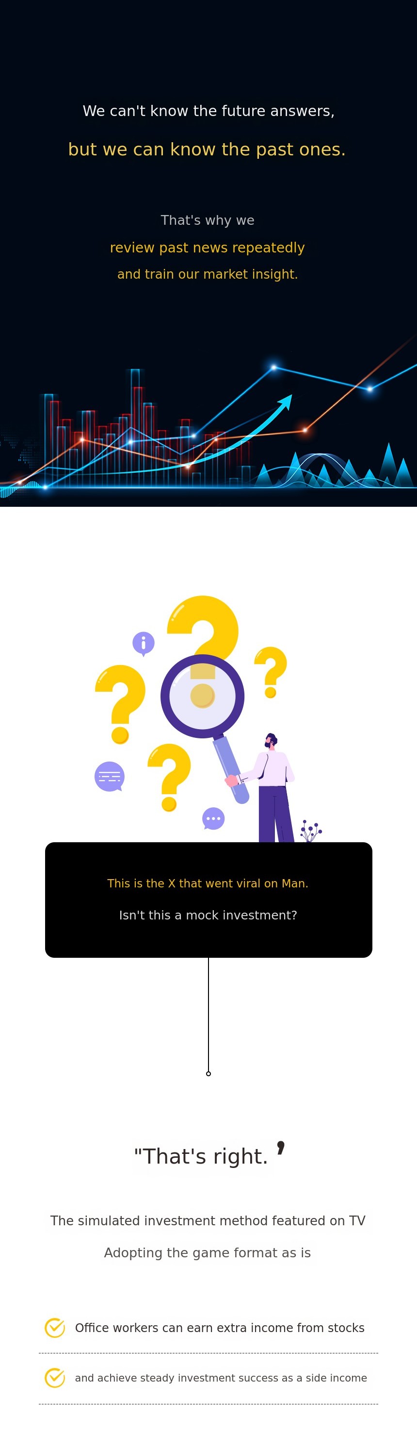 Instead of complicated theories, we have come to Wadiz to offer an experience that combines thrilling game rules with actual Korean stock market data from the past 10 years, allowing for simulated investment.