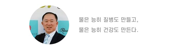 - 우리 주변에서도 물 좋고 공기 좋은데 가서 요양하면 웬만한 병들은 많이 호전되는 것을 볼 수 있습니다. 그러나 현재 우리가 먹는 물은 수돗물이든 정수기 물이든, 환경오염과 오래된 건물 구조, 관리가 소홀한 정수를 통한 세균번식, 미네랄제거 등으로 건강을 위한 물의 참다운 기능을 느끼지 못하는 현실입니다.