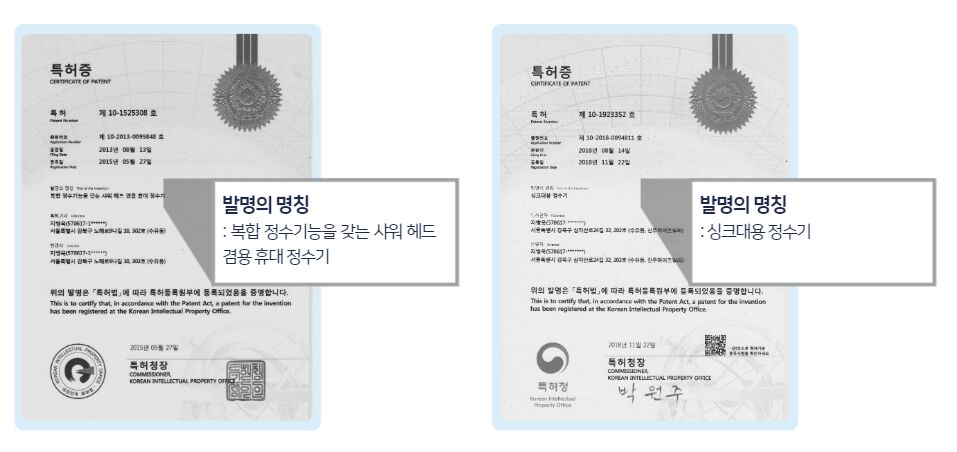 - 깨끗하지 못한 물은 가족의 건강을 해칠 수 있기에 꼭 필요한 제품이라는 확신을 하고 고민하고 연구하여 마침내 인정받는 제품을 개발할 수 있었습니다.