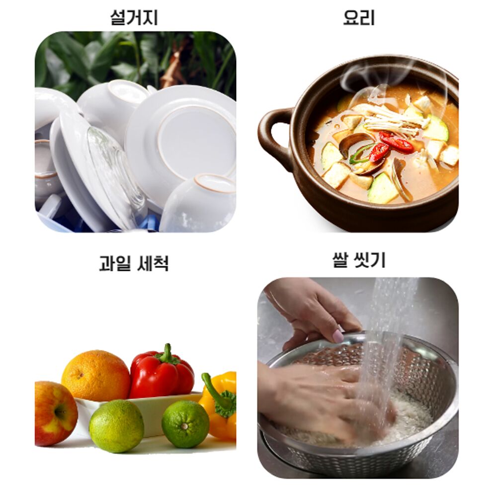 밥, 국, 찌개, 반찬은 물론 채소와 과일을 씻을 때도 수돗물을 한 번 더 걸러서 깨끗한 물 ! 요리수를 사용하세요 :-D