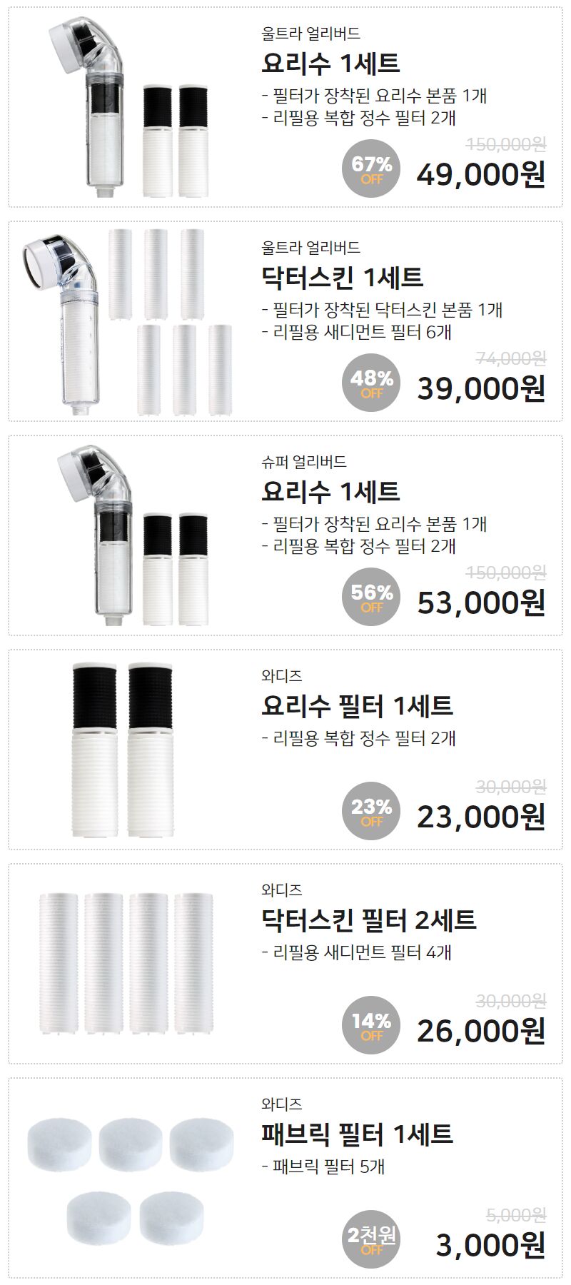 - 믿고 펀딩해 주신 서포터님들께 감사드리며 수차례 제품 수정과 연구의 결실인 바이오라이프만의 복합 정수 필터 요리수를 가장 합리적인 가격과 구성으로 와디즈 서포터님들께 먼저 선보이고 인정받기위해 닥터스킨 샤워헤드와 함께 앵콜 프로젝트를 오픈하게 되었습니다.