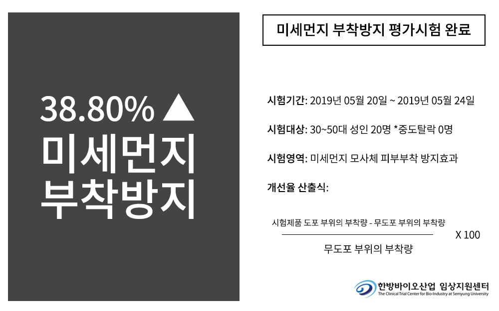 | 특장점 | 미세먼지 모사체 흡착방지, 블루라이트 차단, 피부첩포자극성 무자극 임상평가 완료 SPF50+/PA++++ 자외선차단 기능성화장품 |
