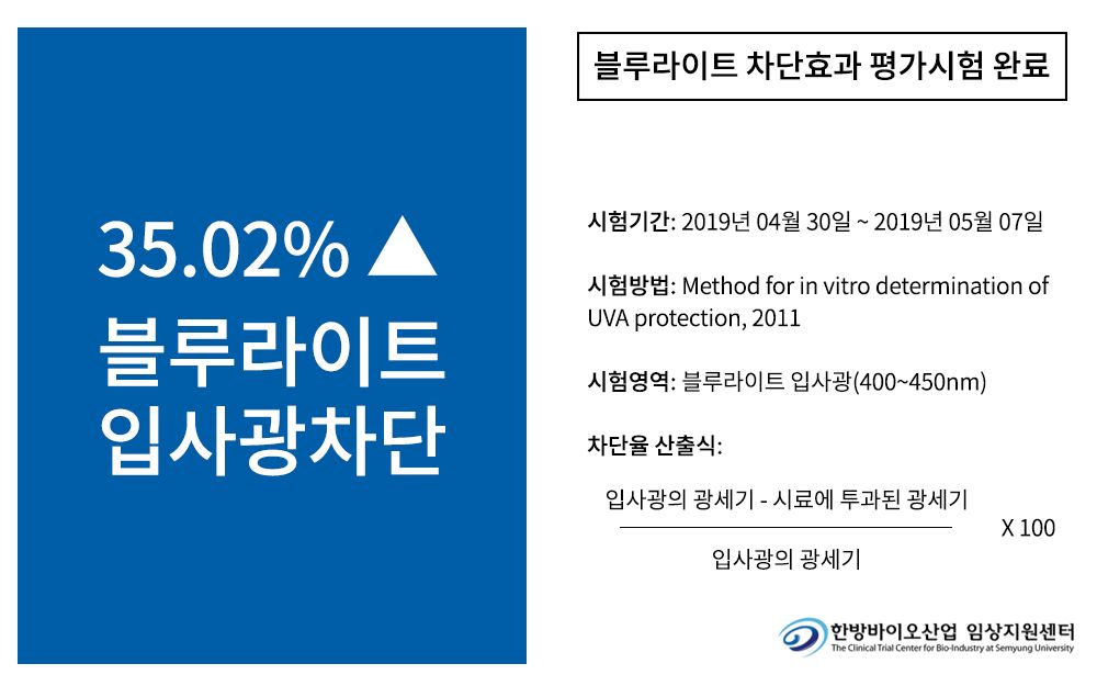 블루라이트를 차단하기 위해 물리적 자외선차단성분 2종과 미세먼지흡착을 방지하는 CITYSTEM™과 피부컨디셔닝용으로 사용되면서도 그림자효과를 낼 수 있는 성분들의 N중 조합으로 블루라이트를 차단합니다. 이를 In vitro 테스트를 통해 입증완료했습니다. 그리하여 시중의 선크림보다 합리적인 가격에 블루라이트까지 차단하는 대구시티선크림을 오늘 소개하게 되었습니다.