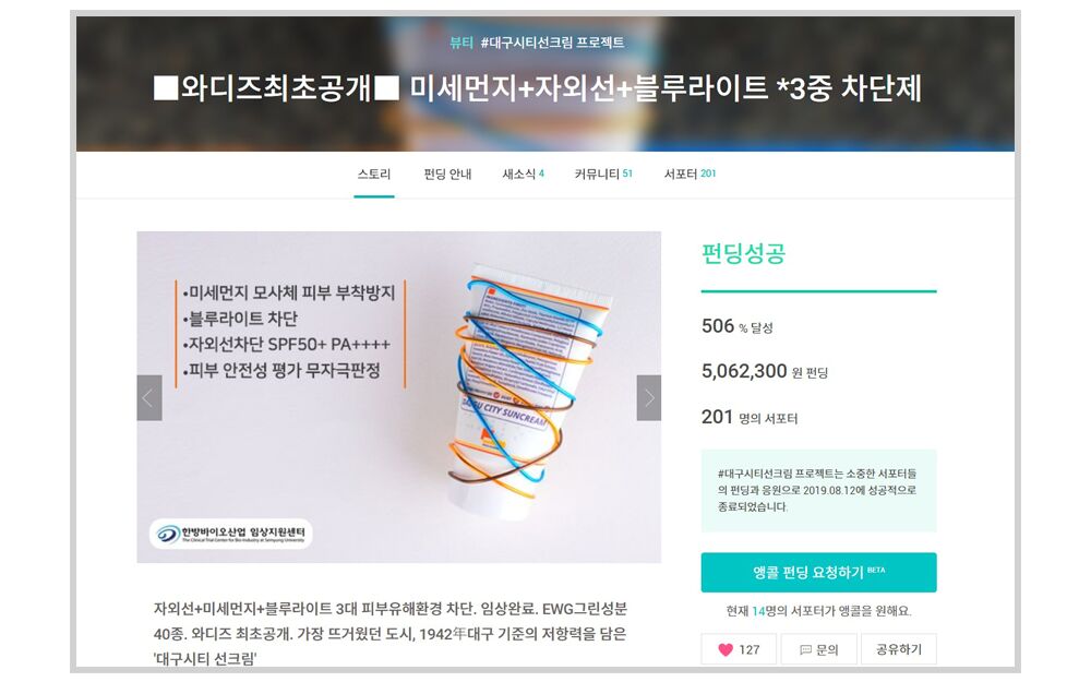 이퀄베리는 이미 와디즈를 통해 제품을 런칭하며 많은 사랑을 받았습니다. 앞으로도 신제품은 와디즈를 통해 공개할 계획이며 이는 규모 경쟁인 뷰티업계에서 작지만 정직한 브랜드들과 소비자를 이어주는 아주 좋은 방식이라고 생각합니다.