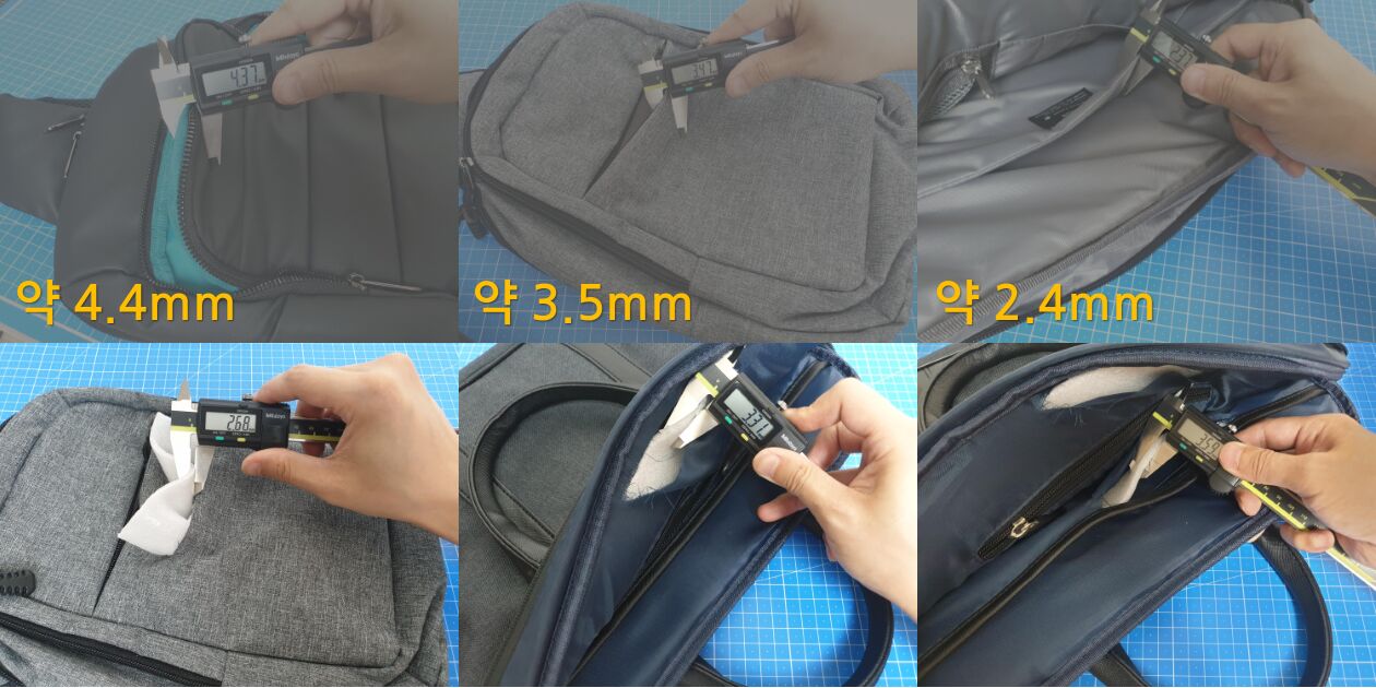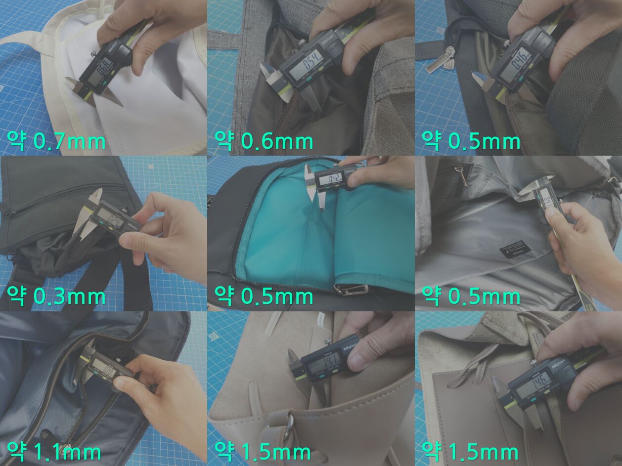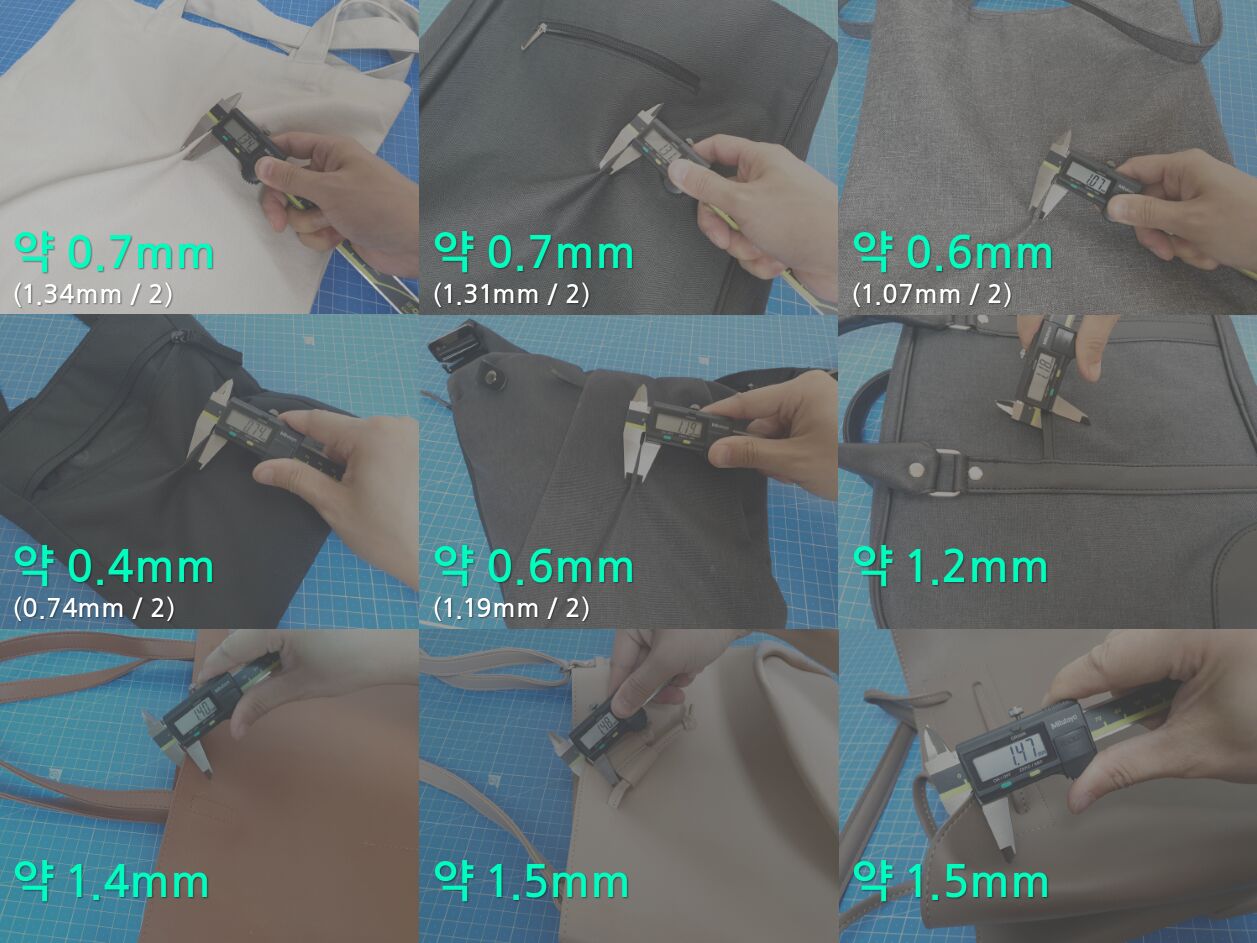 - 직물 가방은 대부분 외부 두께 약 1mm 이하 소재입니다. (보강재가 있는 경우 제외)