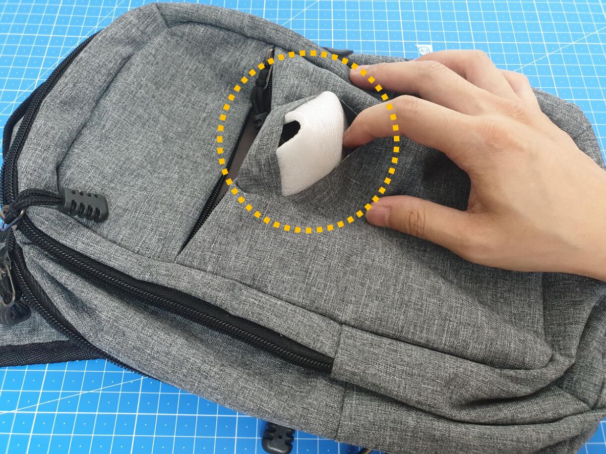 - 탈착 가능한 제품이므로 분실 위험이 있는 곳에서는 가방 내부에 부착하여 사용하시기 바랍니다.