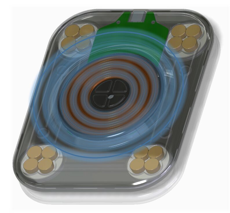 - 자석의 극성에 의해 충전 코일이 자동으로 정위치에 맞춰집니다.