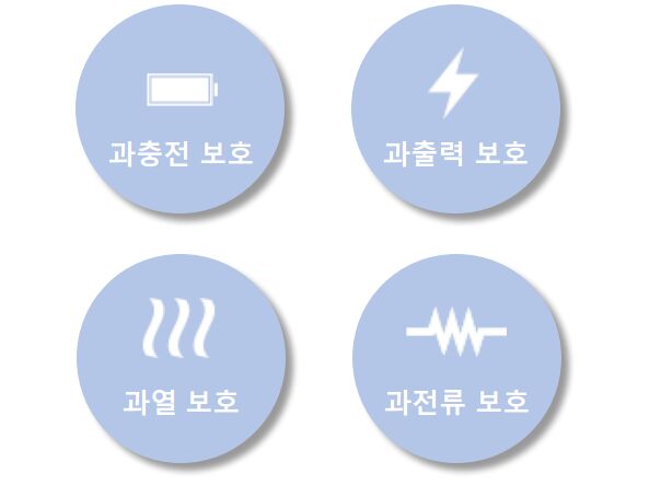- 과충전, 과출력, 과열, 과전류를 감지하여 보다 안전하게 충전 할 수 있습니다.