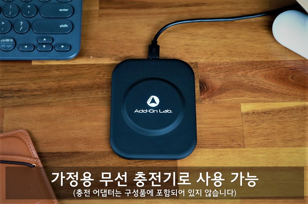 애드온 포켓의 활용은 외출 시에만 그치지 않습니다. 집에서는 가정용 무선 충전 패드로 사용하세요. 스마트폰은 물론, 에어팟2, 갤럭시 버즈등의 무선 이어폰까지 무선 충전을 지원하는 기기라면 충전이 가능합니다. '집에서도', '밖에서도' 무선 충전의 편리함을 누리세요.