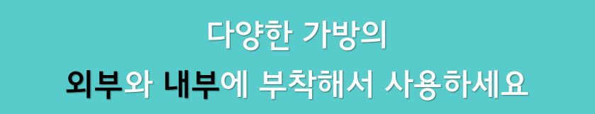 가방이 바뀌어도 '싹~' 떼서 '착~' 부착하면 됩니다. 가방 외부에 부착할 곳이 없거나, 분실 위험이 있는 경우에는 가방 내부에 부착하여 사용해 보세요. 다양한 라이프 스타일에 맞춰 사용 가능합니다.