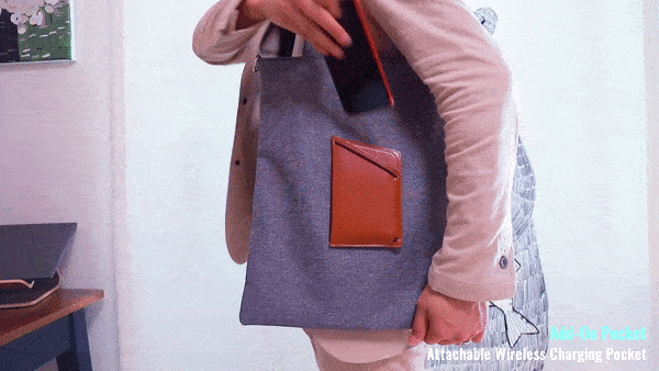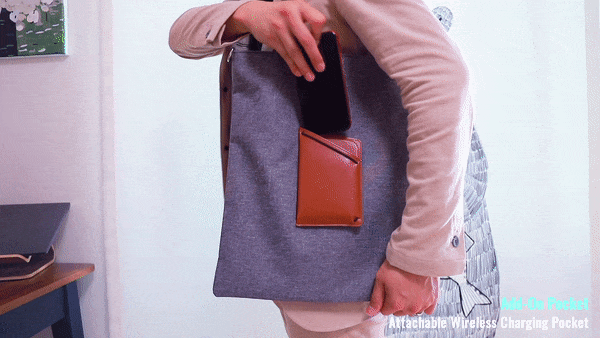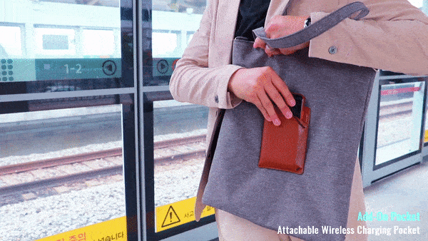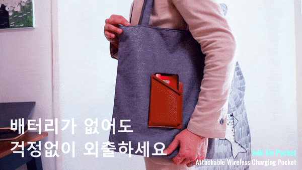 집에 하나쯤 가지고 있는 '보조배터리'. '애드온 포켓' 과 함께 편리한 무선 충전 포켓으로 활용할 수 있습니다. 보조배터리를 애드온 포켓의 '무선 충전 패드'에 연결 해주세요. 연결 후 '포켓'과 함께 가방의 부착하고자 하는 위치에 '착~!' 결합해주면 스마트폰 수납과 충전 걱정 없는 편리한 외출 시작~!